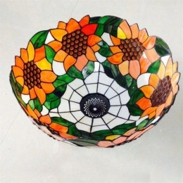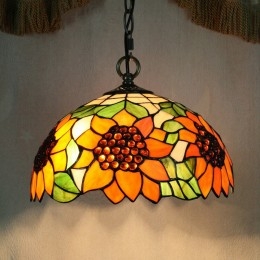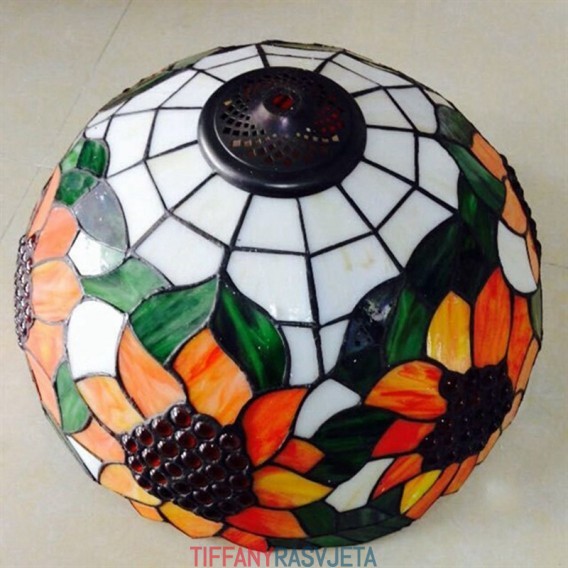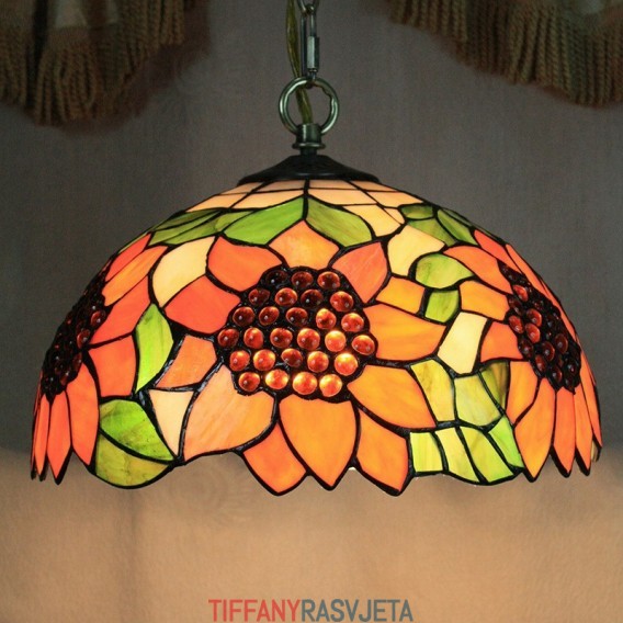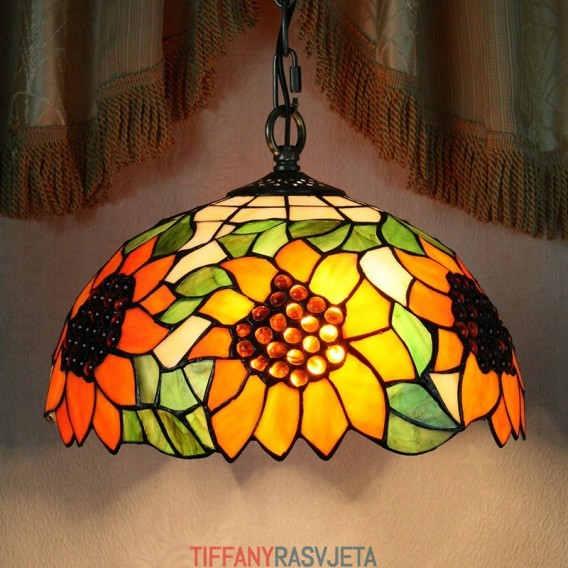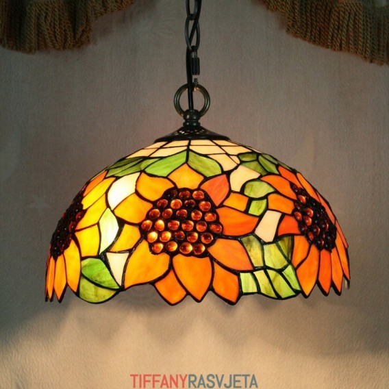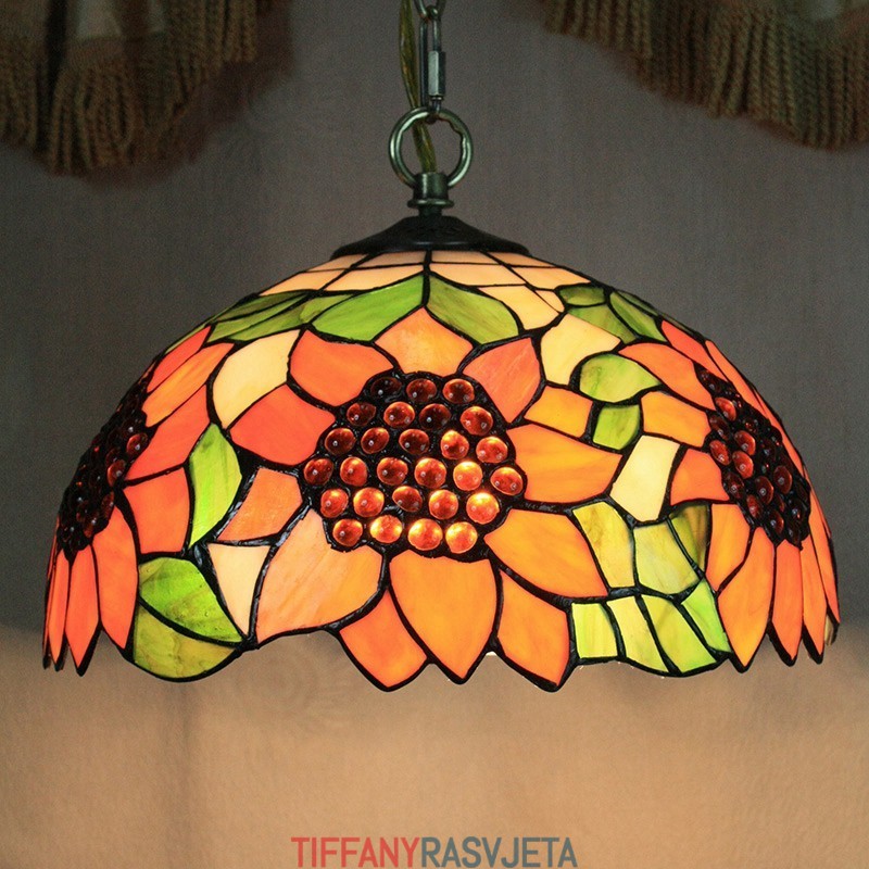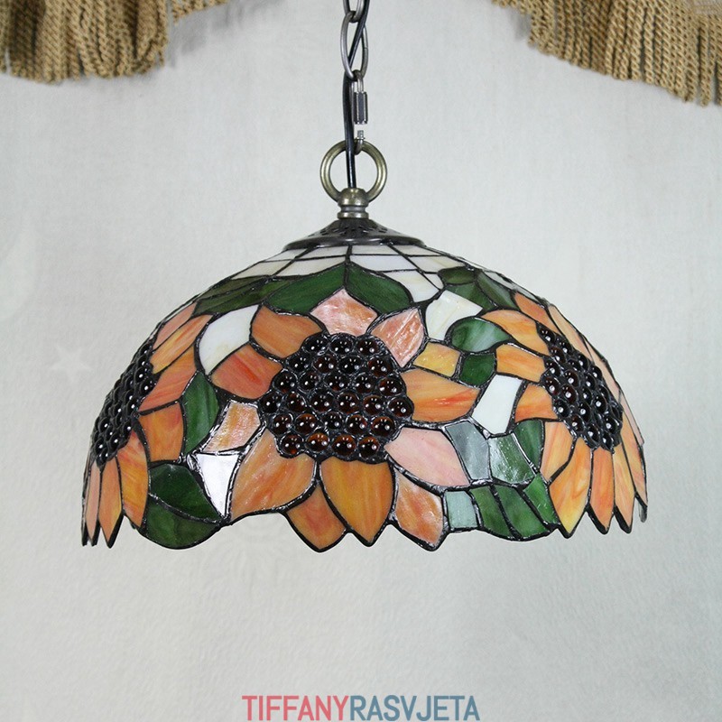 Ručno izrađena vintage Tiffany viseća svjetiljka s 2 žarulje i sjenilom s uzorkom suncokreta