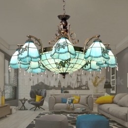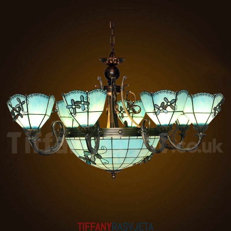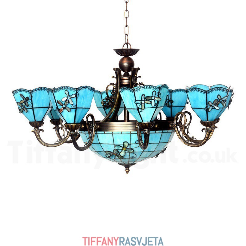 Ručno izrađeni Tiffany luster u vintage mediteranskom stilu s 8+1 svjetlima