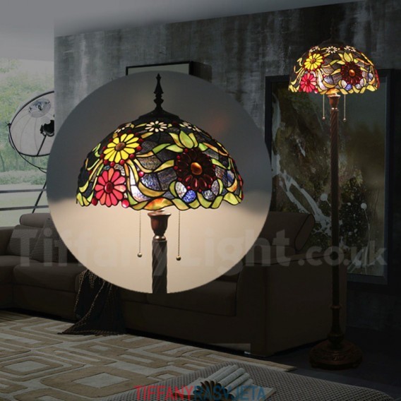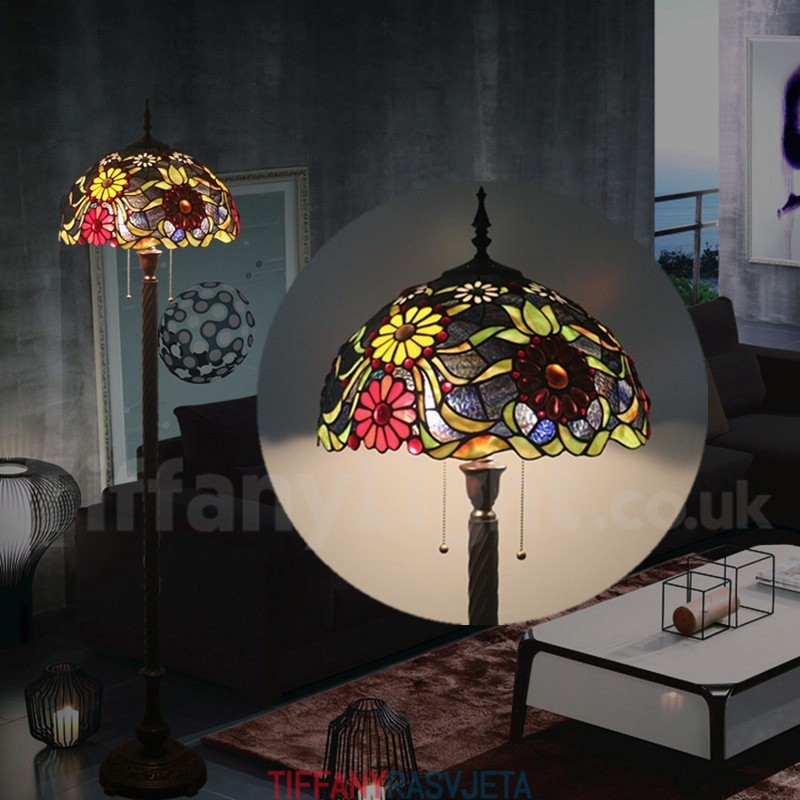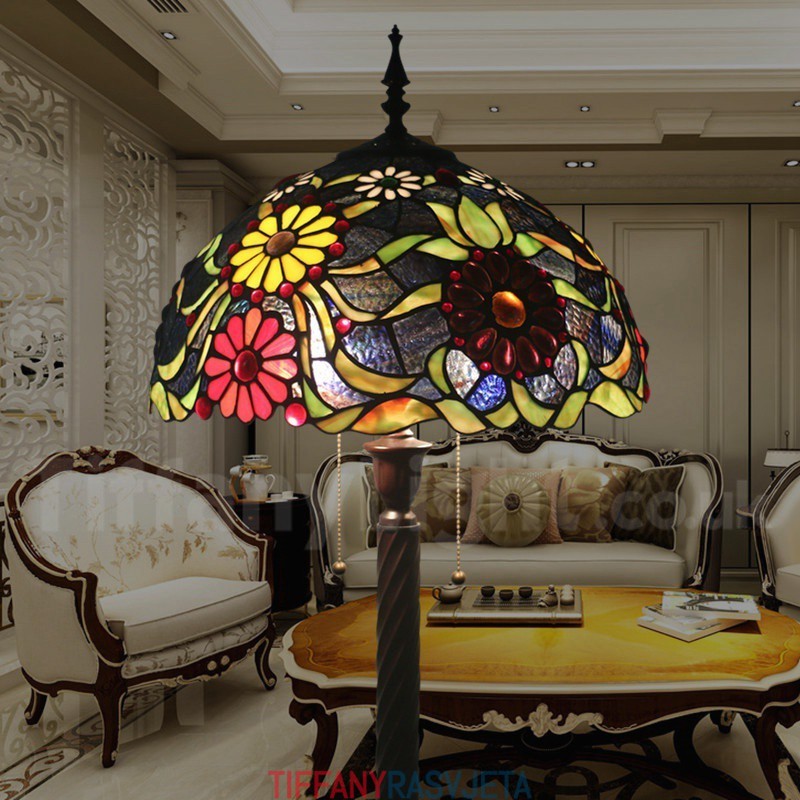 Ručno izrađena vintage podna lampa od vitraja Tiffany od 16 inča