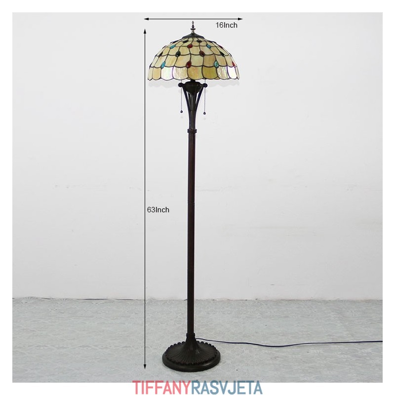 Ručno izrađena vintage podna lampa u stilu Tiffanyja s ručno izrađenim abažurom širine 16 inča, dekorativna rasvjeta