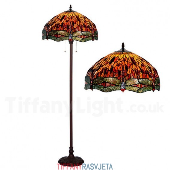 Ručno izrađena vintage podna lampa Tiffany Dragonfly od 45 cm