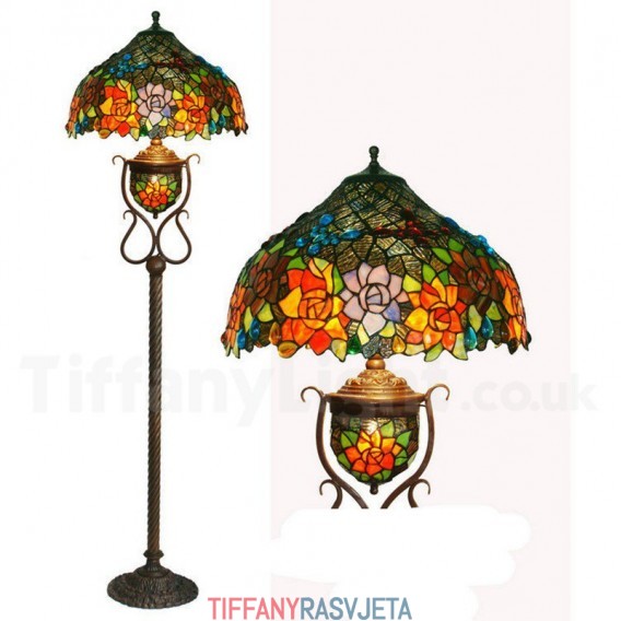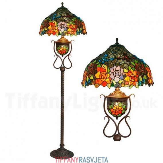 Ručno izrađena vintage podna lampa Tiffany s motivom leptira i ruže od 17 inča