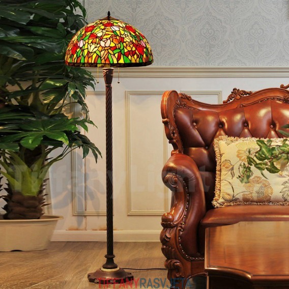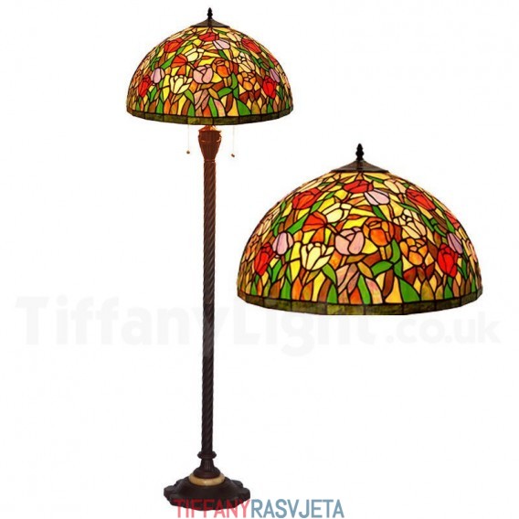Ručno izrađena vintage podna lampa Tiffany s motivom tulipana od 20 inča