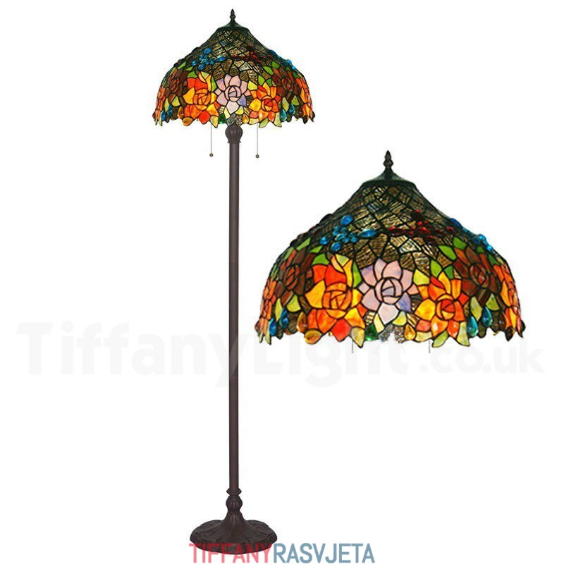 Ručno izrađena vintage podna lampa Tiffany s motivom leptira i ruže od 17 inča