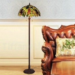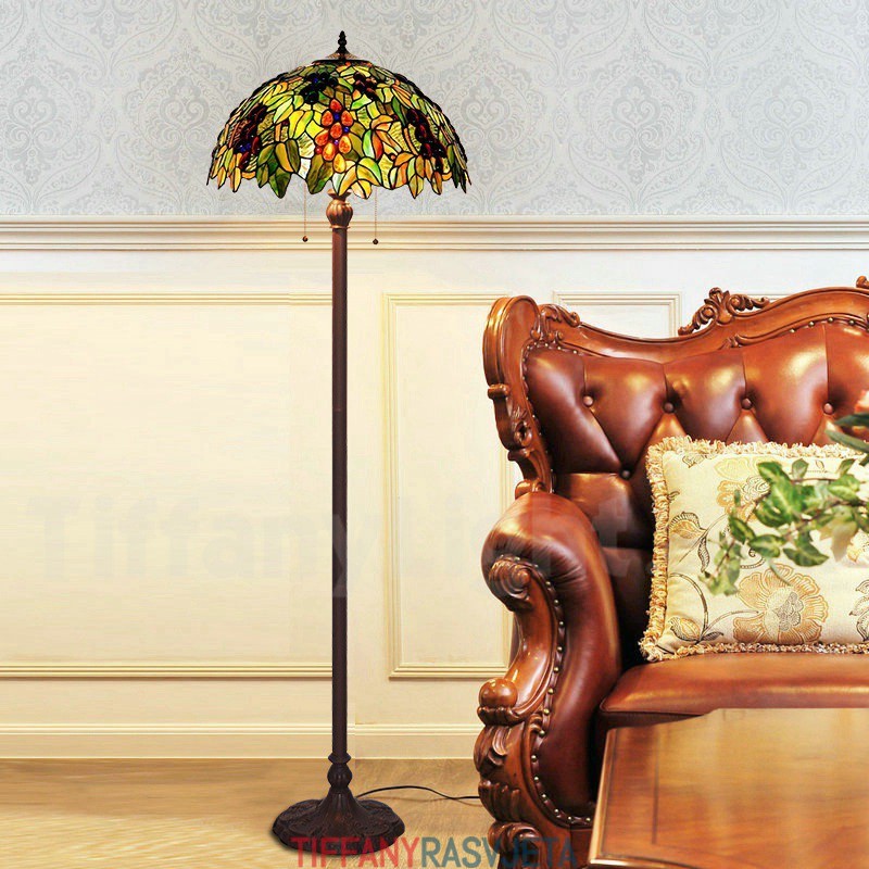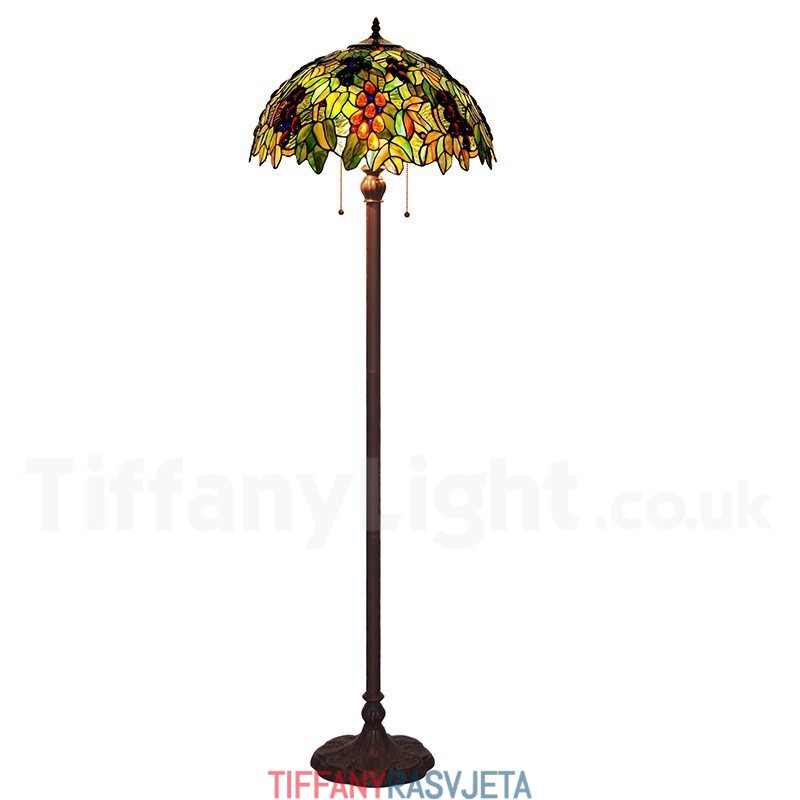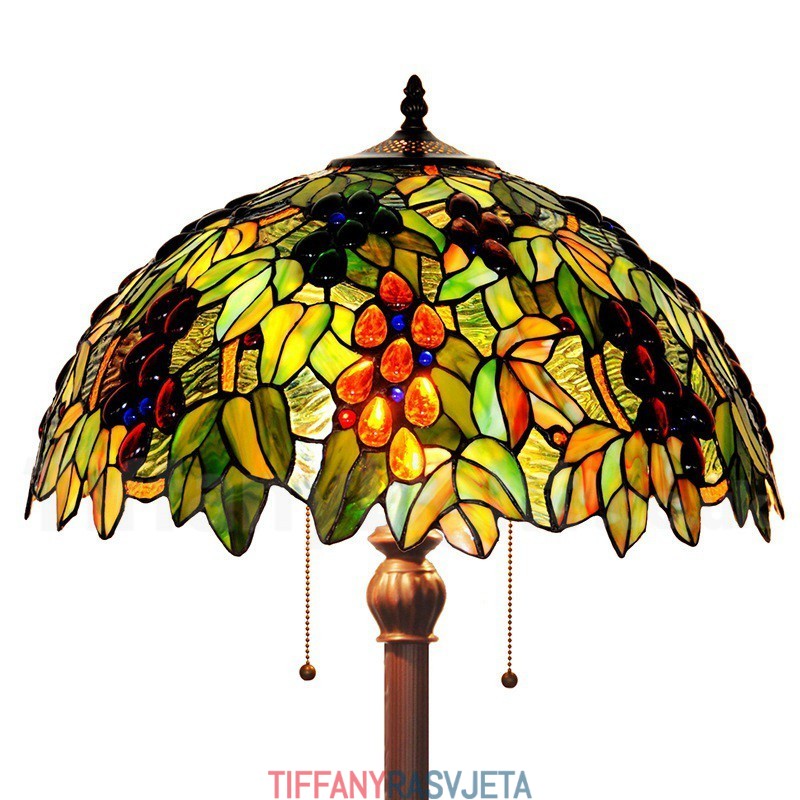 Ručno izrađena vintage seoska retro podna lampa Tiffany s motivom grožđa od 18 inča