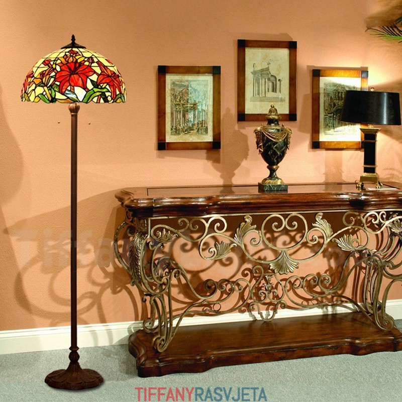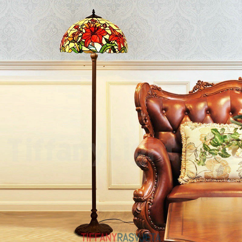 Ručno izrađena vintage crvena Tiffany podna lampa od 16 inča