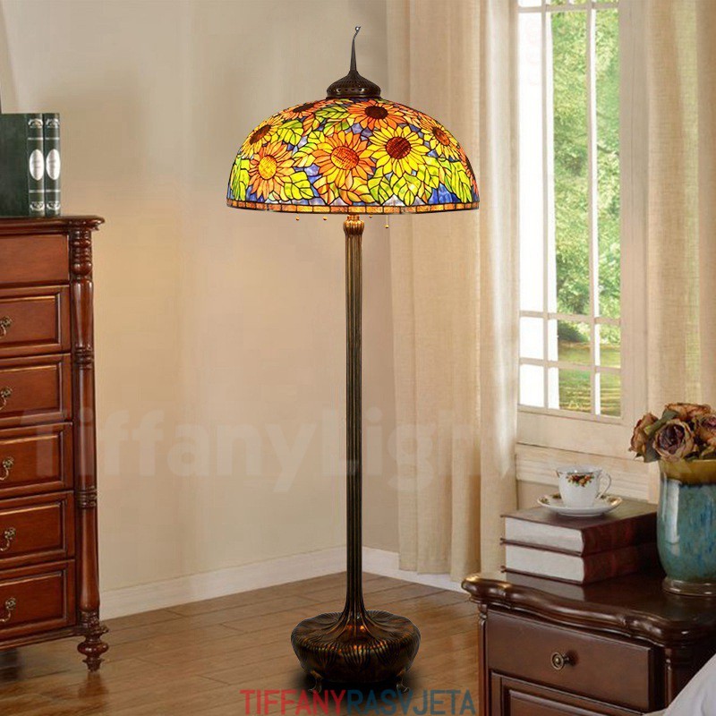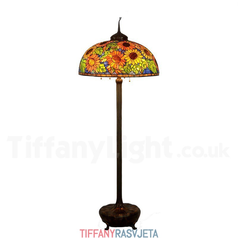 Ručno izrađena vintage Tiffany podna lampa s motivom suncokreta od 26 inča