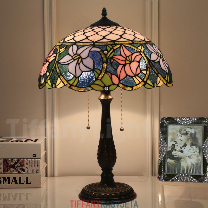 Ručno izrađena vintage 40 cm Tiffany stolna lampa od vitraja