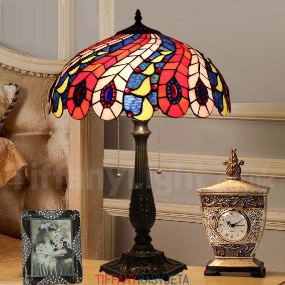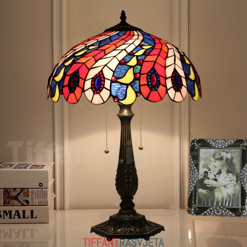 Ručno izrađena vintage 40 cm Tiffany stolna lampa od vitraja