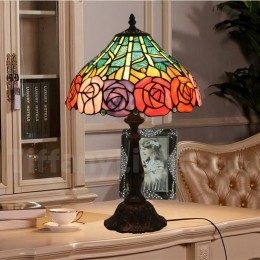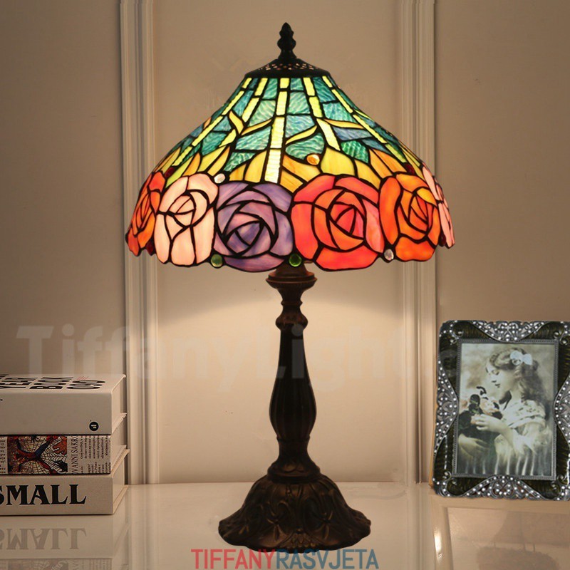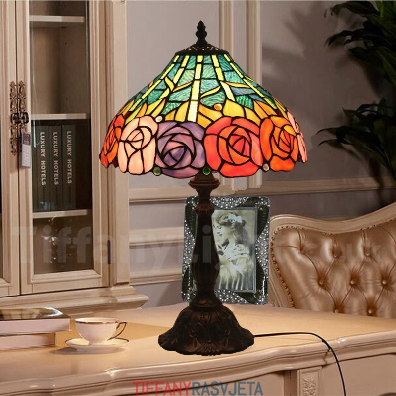 Ručno izrađena vintage 30 cm Tiffany stolna lampa od vitraja