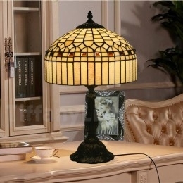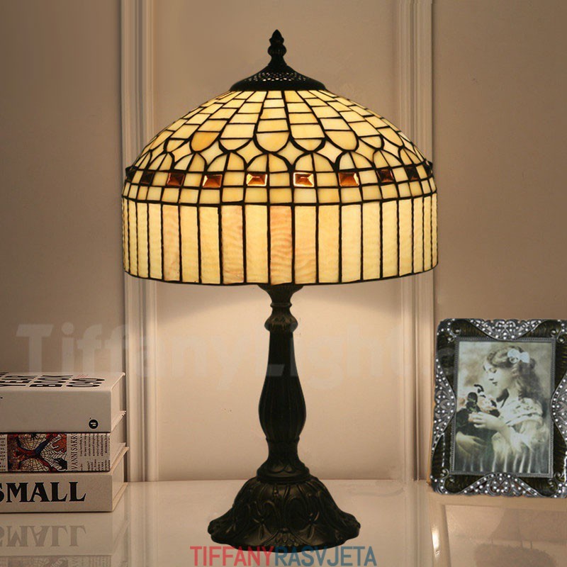 Ručno izrađena vintage američka jednostavna vitražna Tiffany stolna lampa od 30 cm