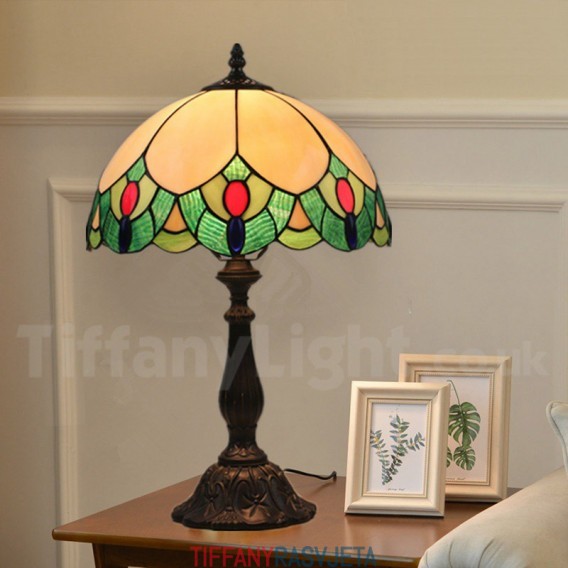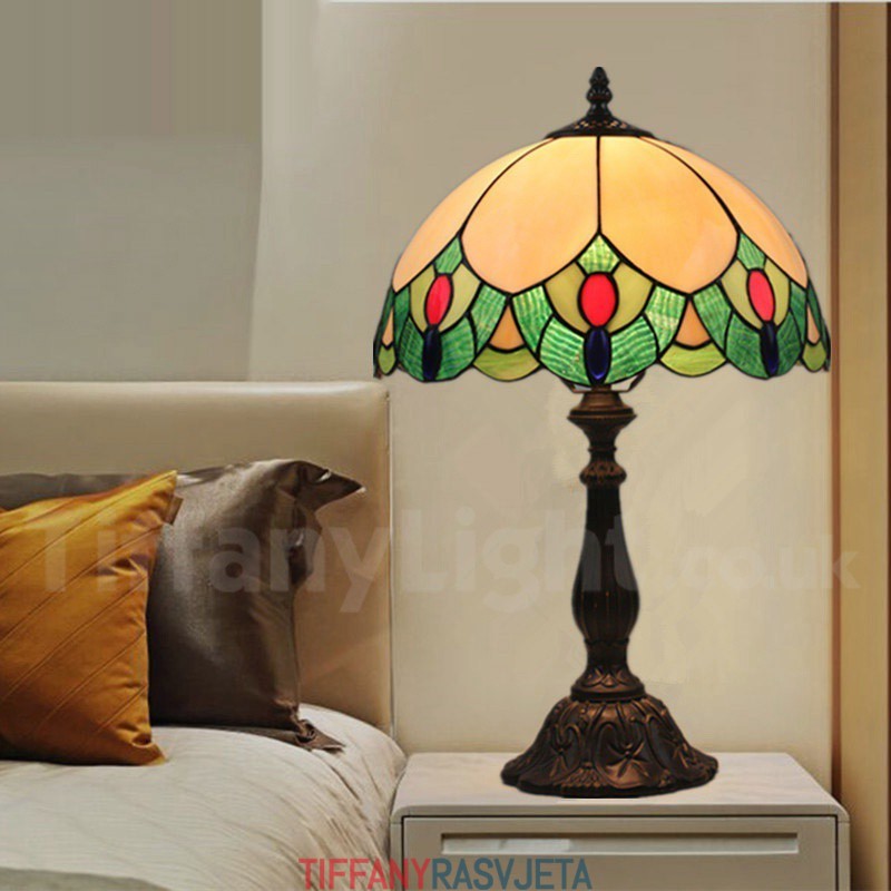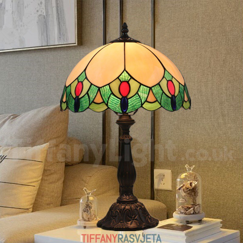 Ručno izrađena vintage 30 cm američka vitražna Tiffany stolna lampa