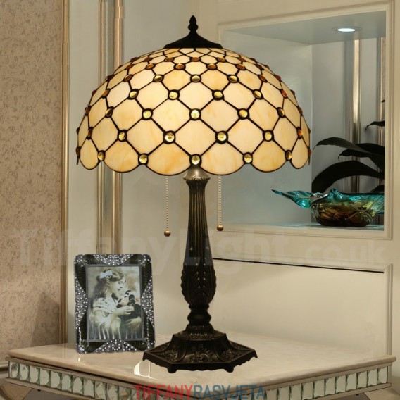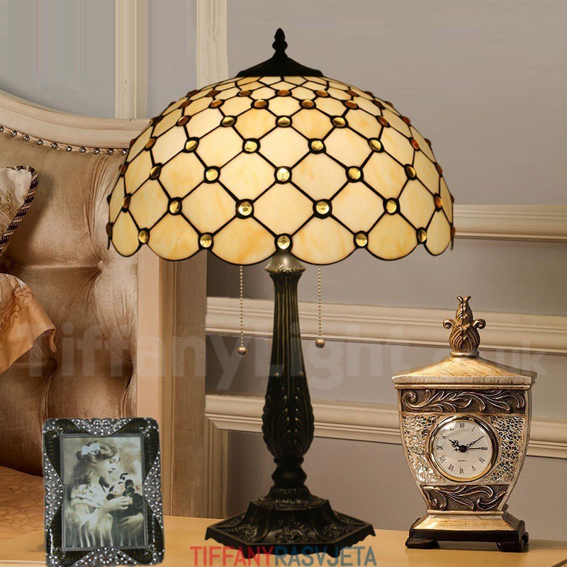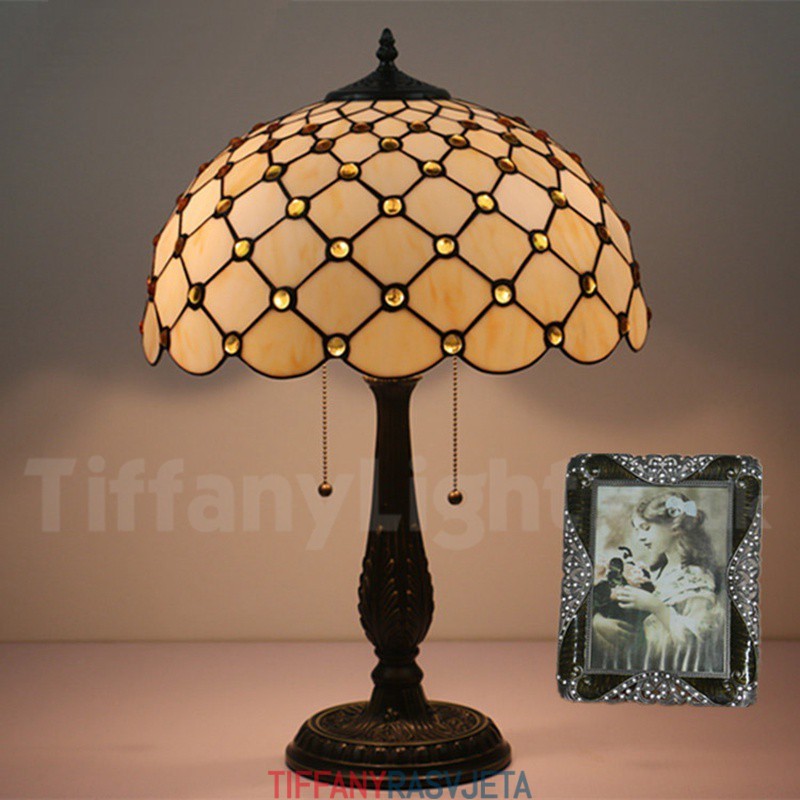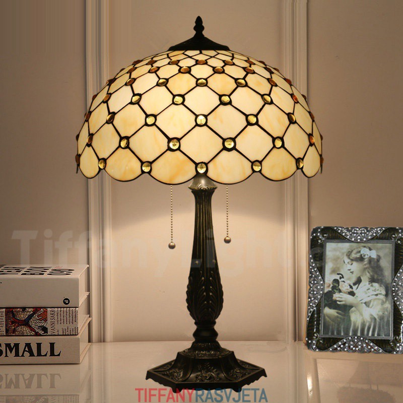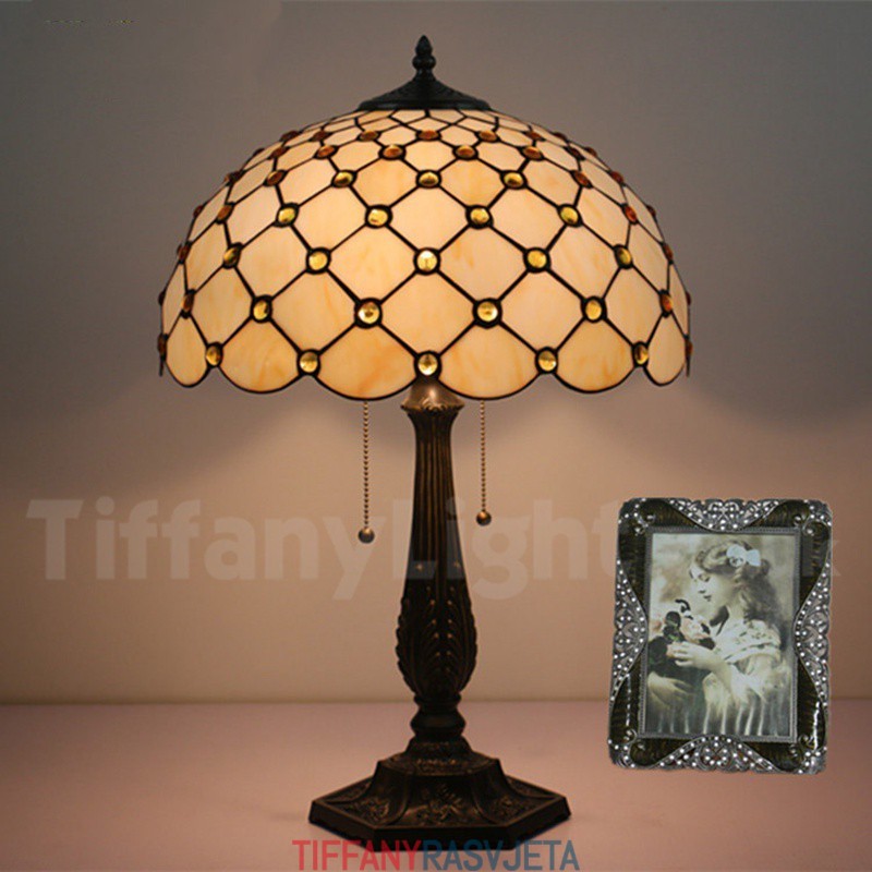 Ručno izrađena vintage 40 cm Tiffany stolna lampa od vitraja