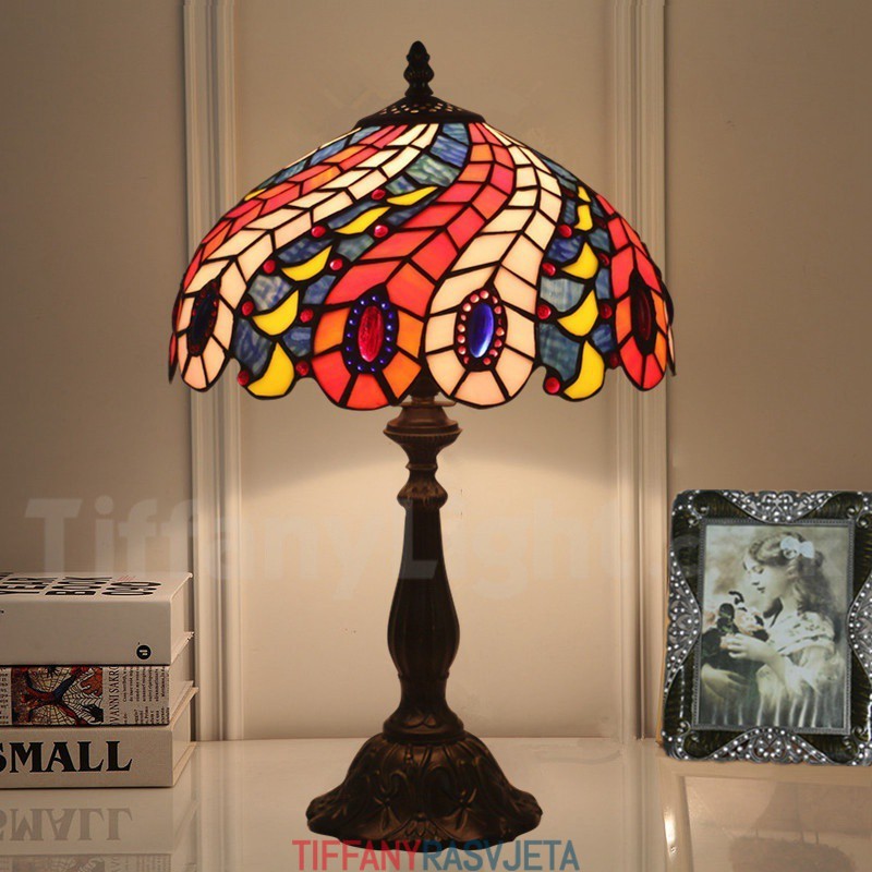 Ručno izrađena vintage 30 cm Tiffany stolna lampa od vitraja