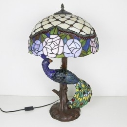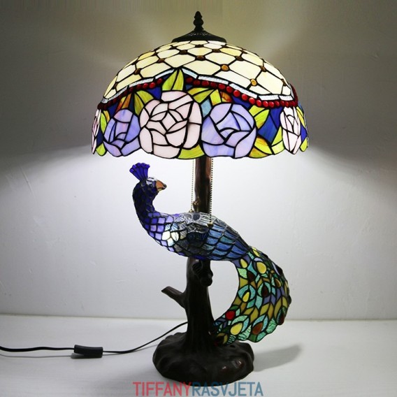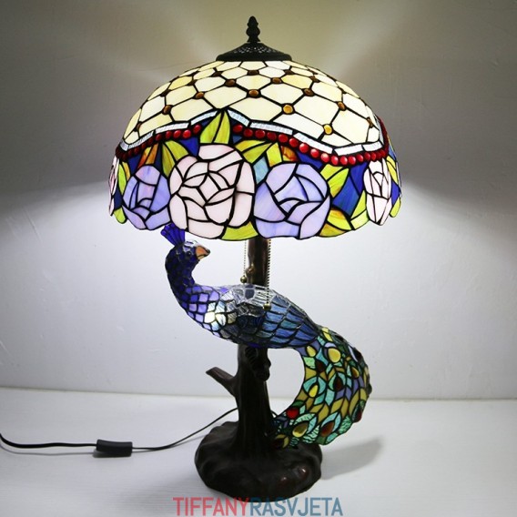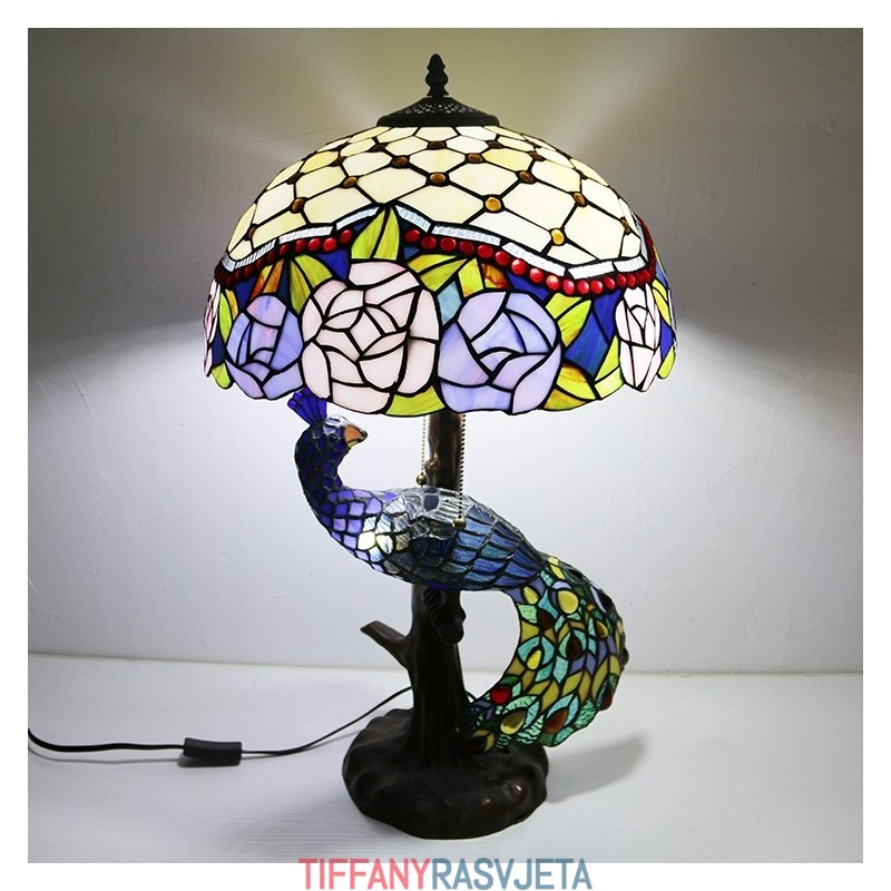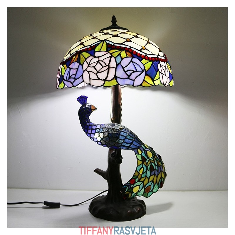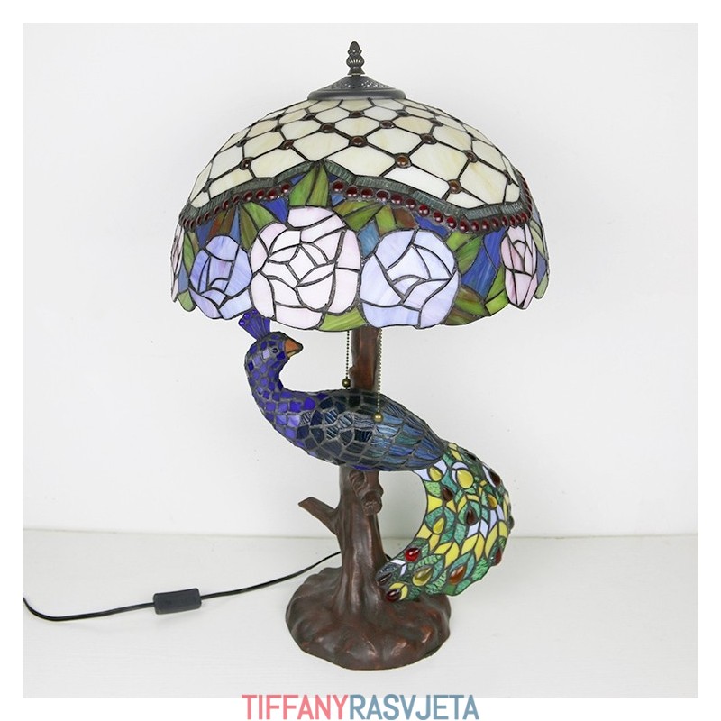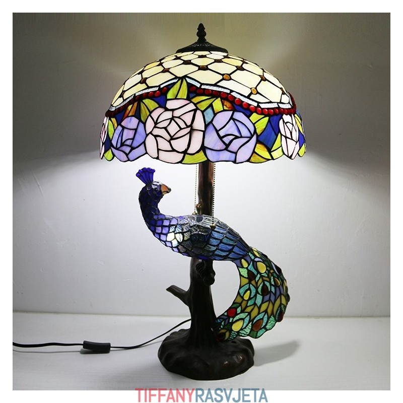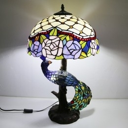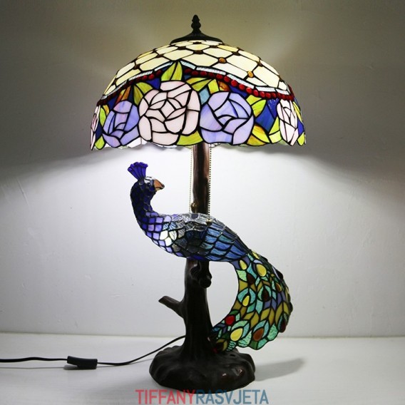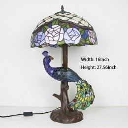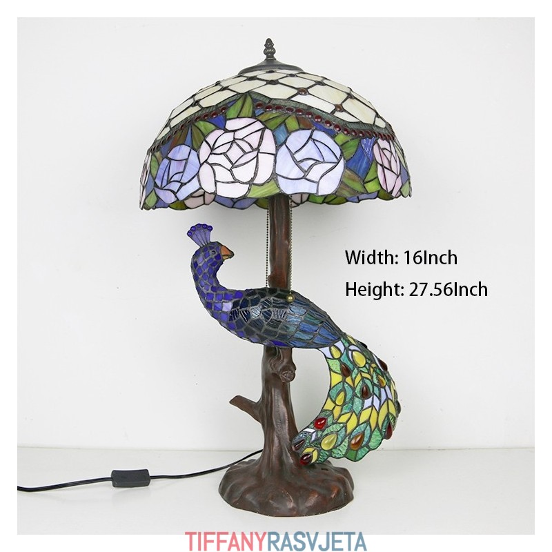 Ručno izrađena vintage stolna lampa u stilu Tiffanyja s podlogom u obliku pauna, 16 inča, antikna cvjećarska vitražna lampa, stolna rasvjeta