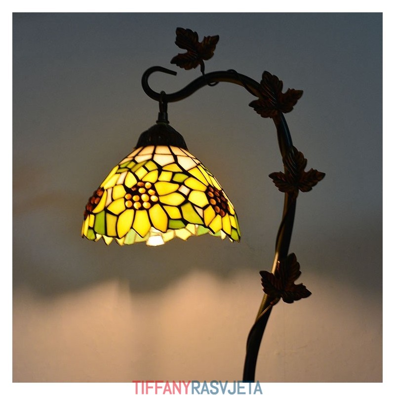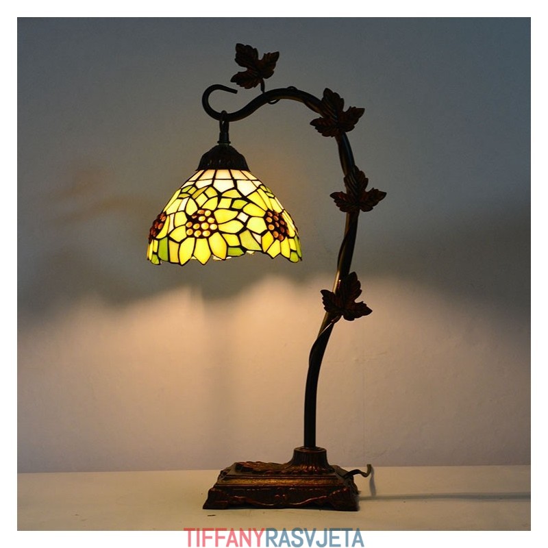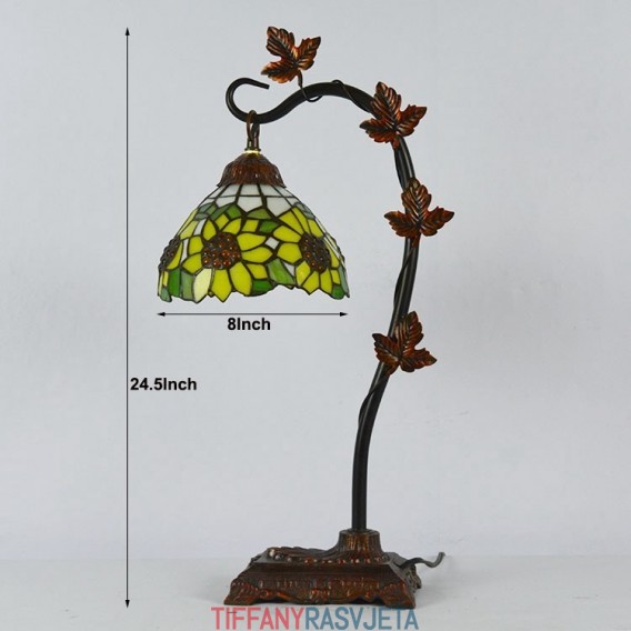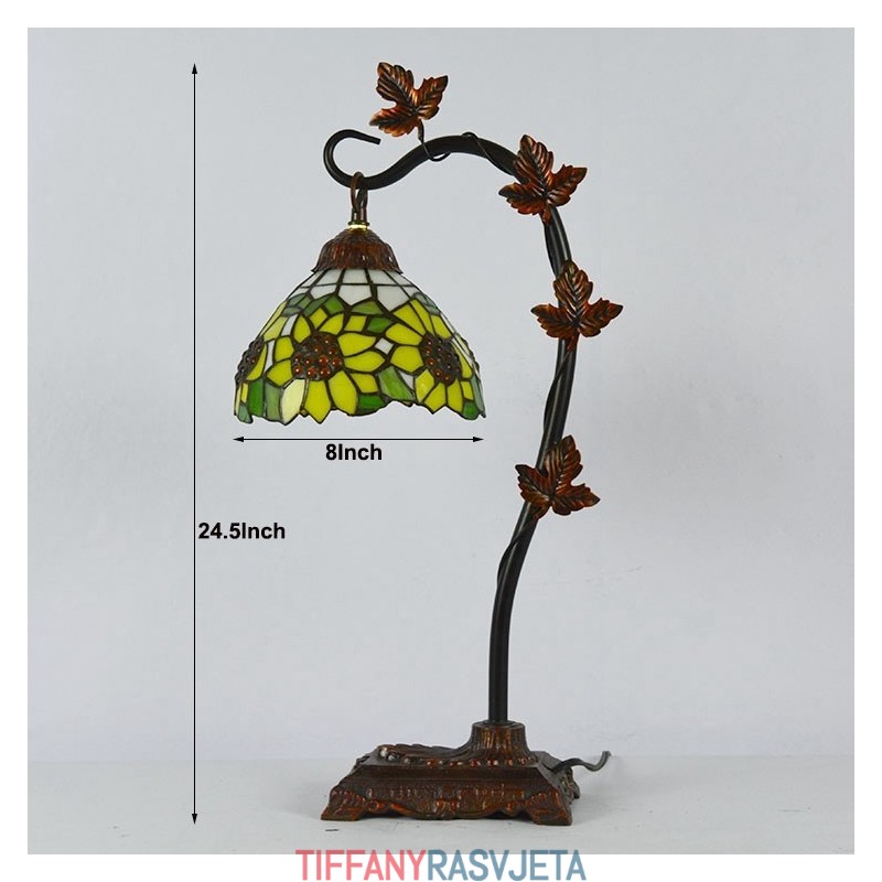Ručno izrađena vintage dekoracija za dom Tiffany stolna lampa s motivom suncokreta, vitraž, stolna lampa s metalnom podlogom od loze Jutarnja slava