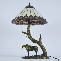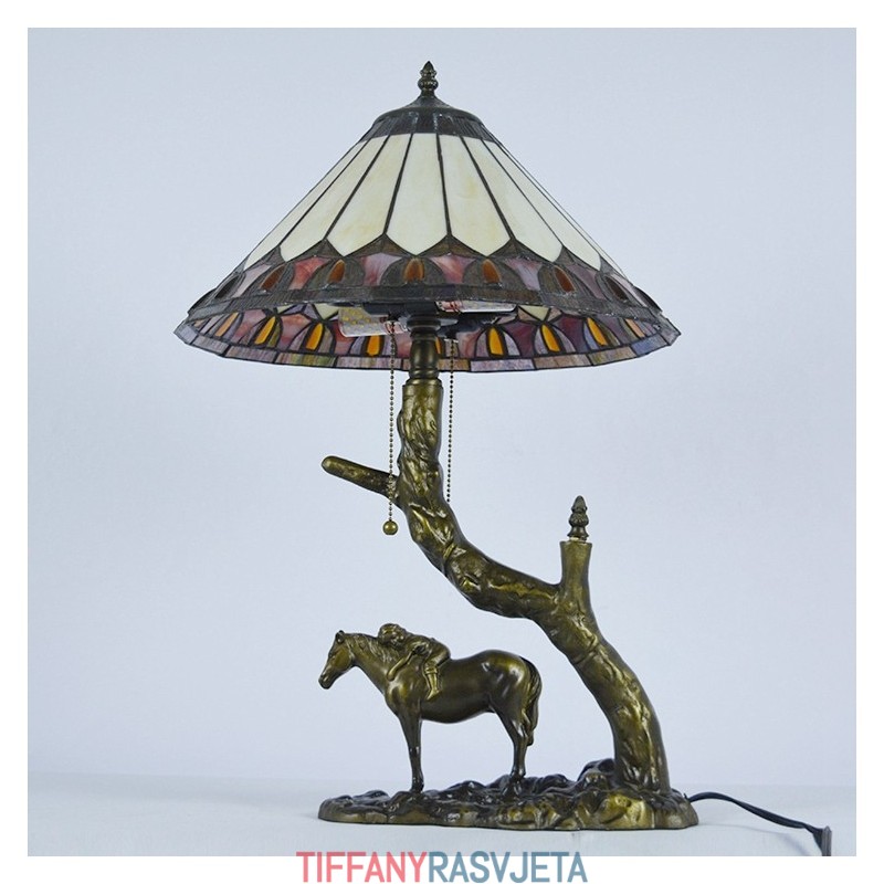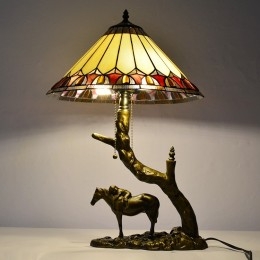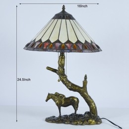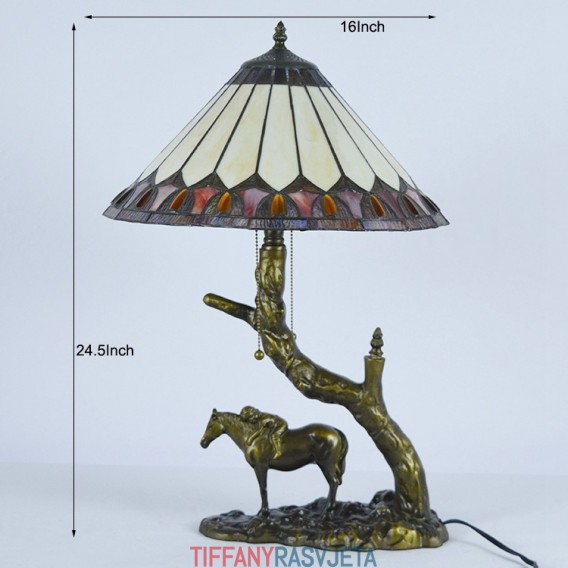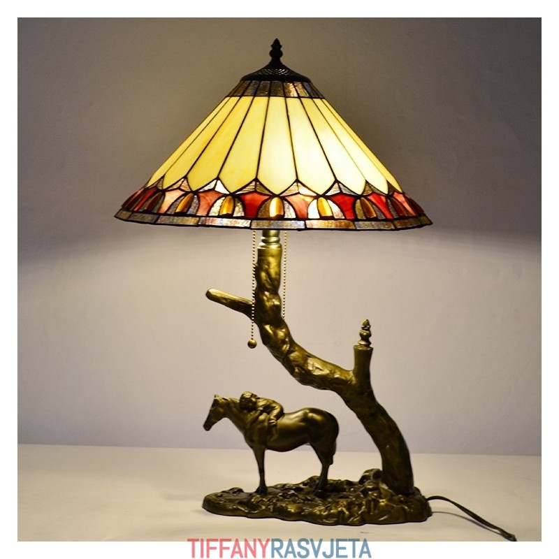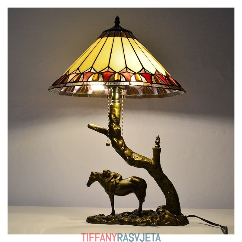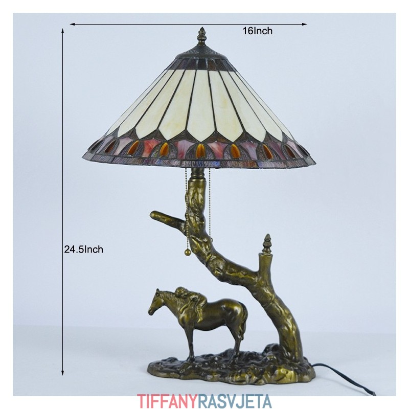 Ručno izrađena vintage stolna lampa od vitraja u Tiffany stilu s elegantnim konusnim abažurom i podnožjem od konjske smole