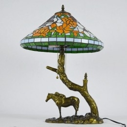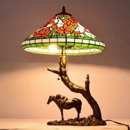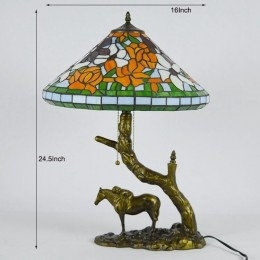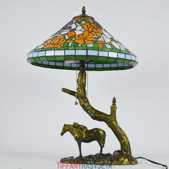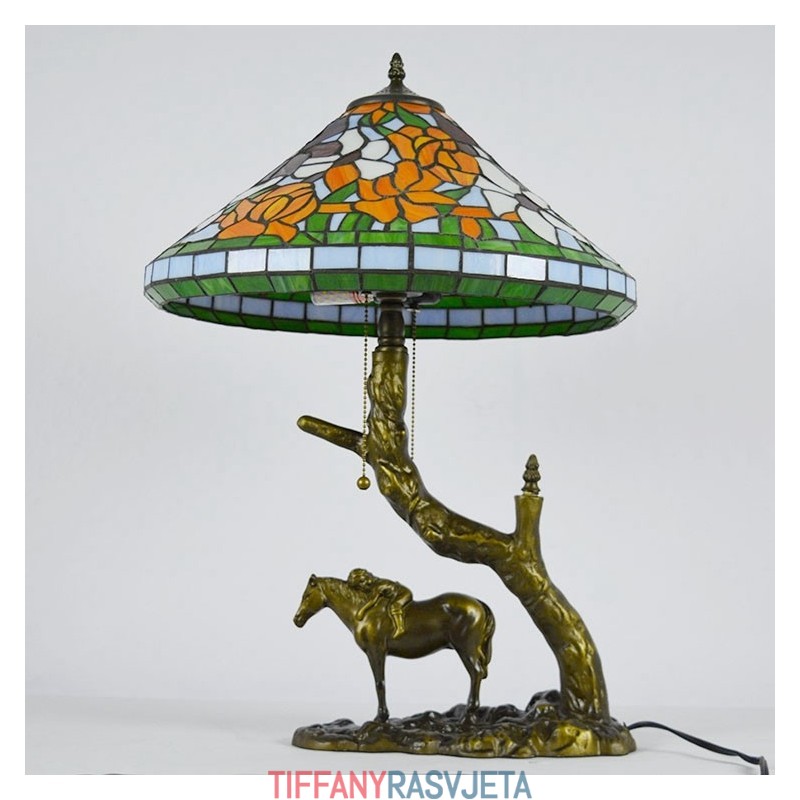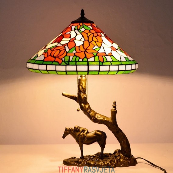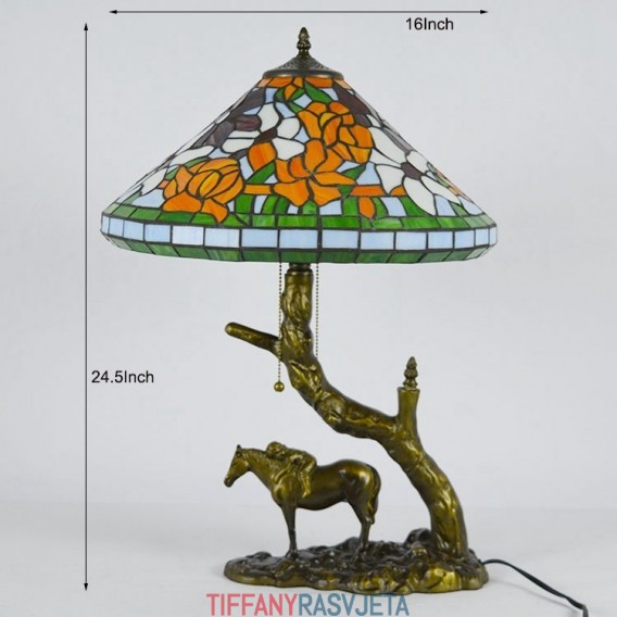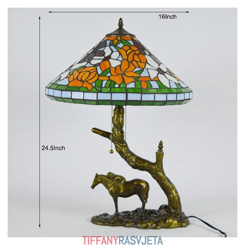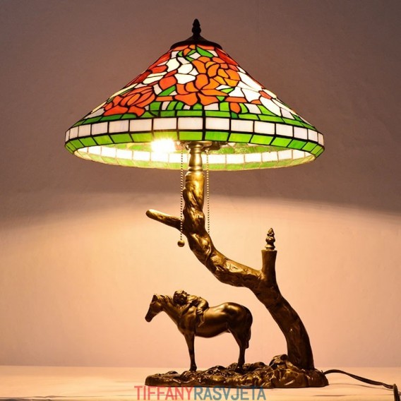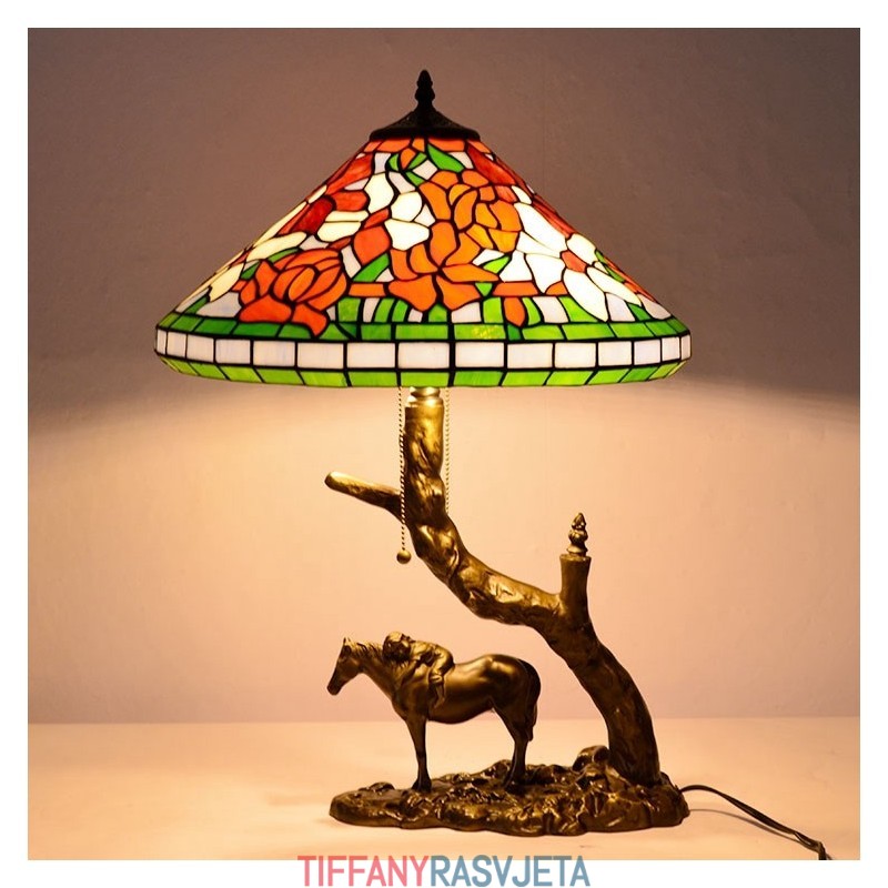 Ručno izrađena vintage stolna lampa od vitraja u Tiffany stilu s abažurom od 40 cm i bazom od konjske smole