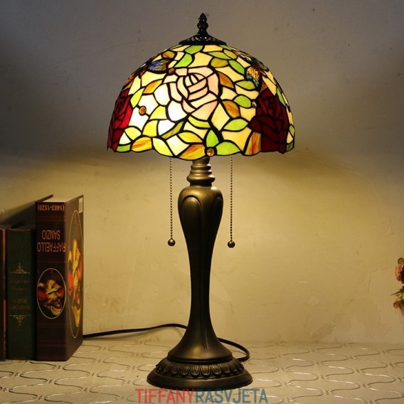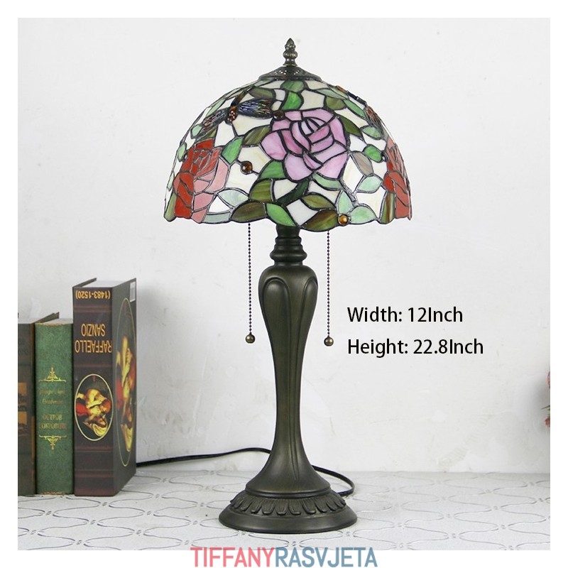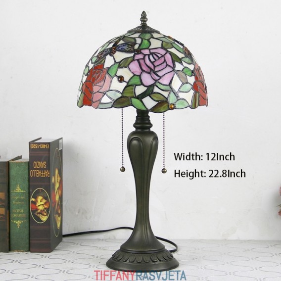 Ručno izrađena vintage stolna lampa u stilu Tiffanyja od 12 inča, elegantna stolna lampa s cvjetnim vitražom, kreativna noćna lampa za spavaću sobu