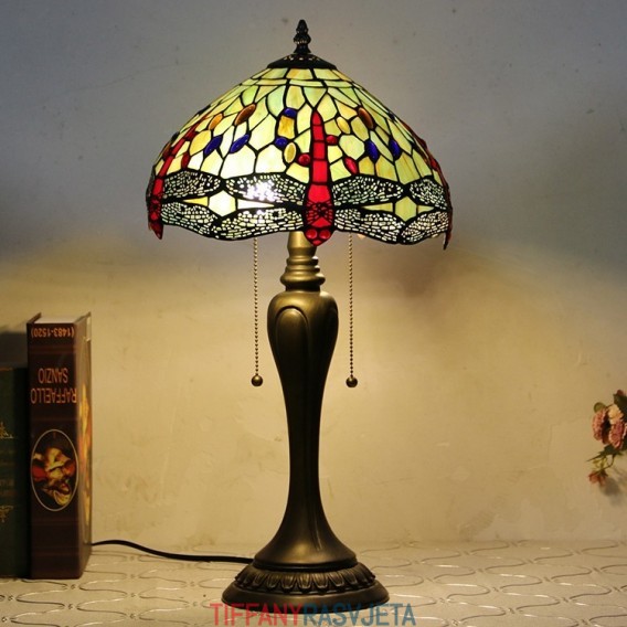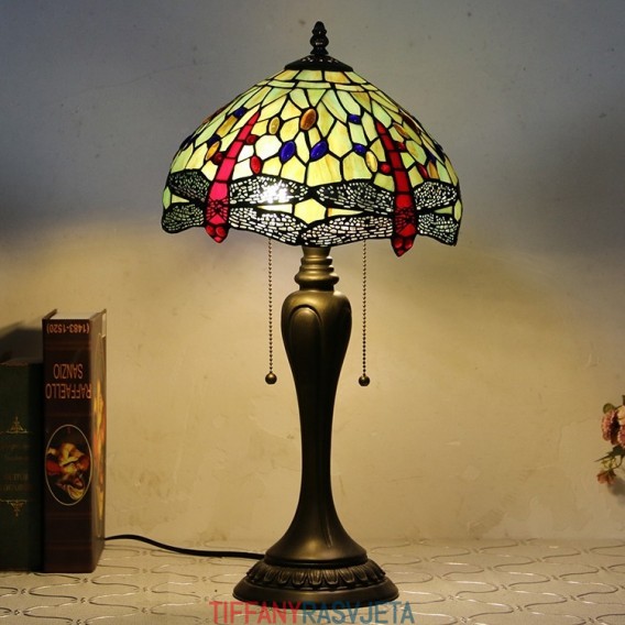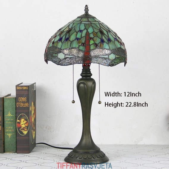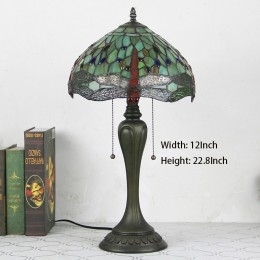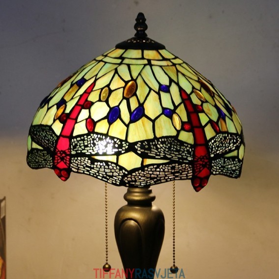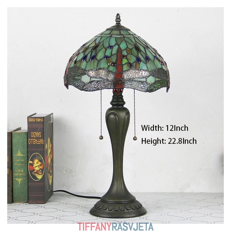 Ručno izrađena vintage stolna lampa u stilu Tiffanyja od 12 inča, crvena stolna lampa s vitražom i vretenom, kreativna noćna lampa za spavaću sobu