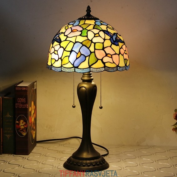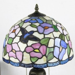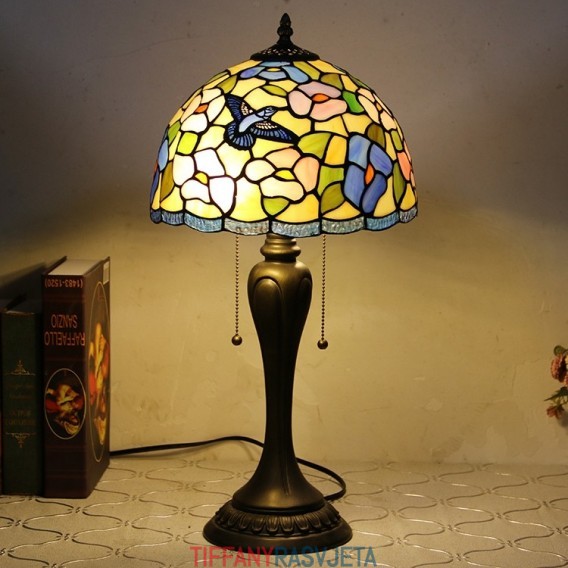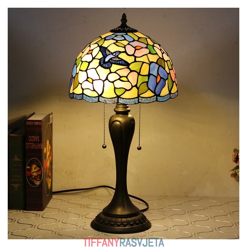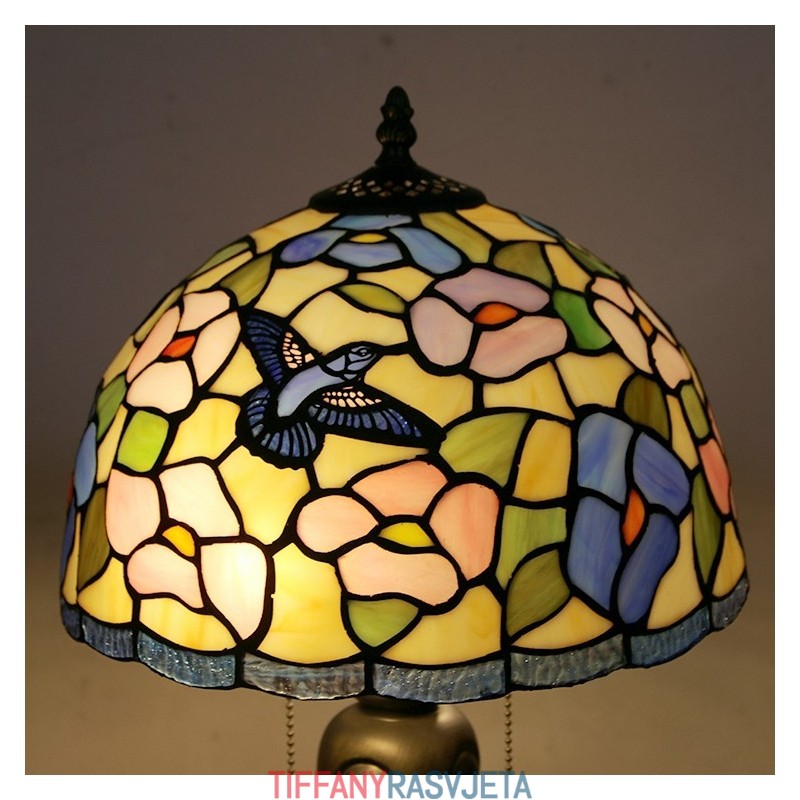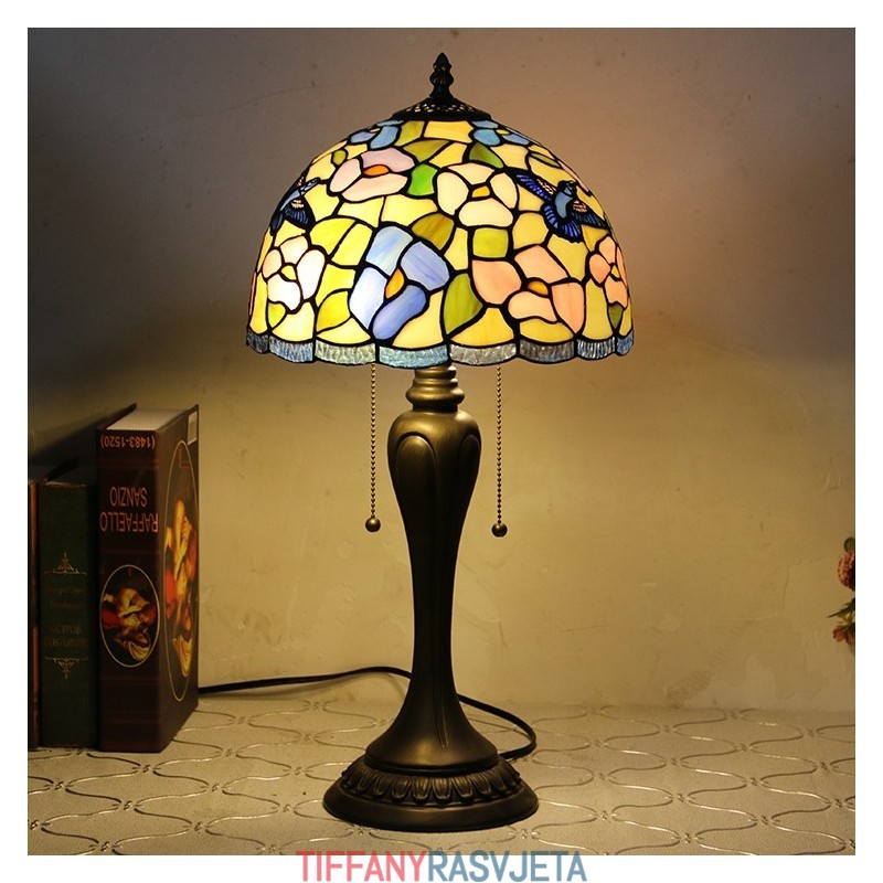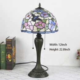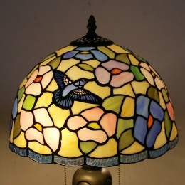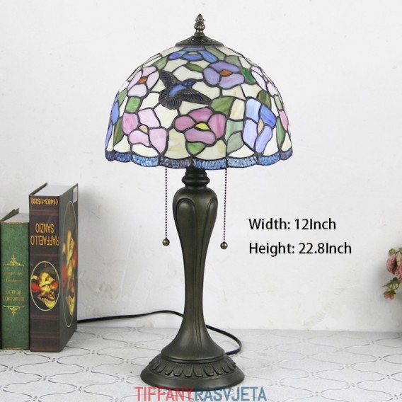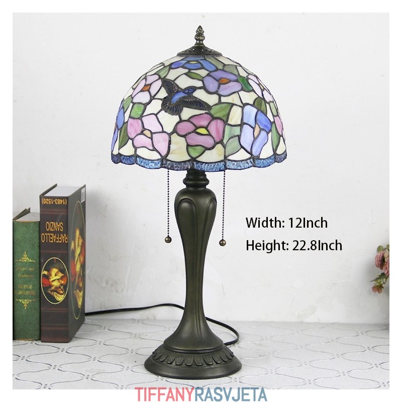 Ručno izrađena vintage stolna lampa u stilu Tiffanyja od 12 inča, vitražna stolna lampa s motivom ptica, kreativna noćna lampa za spavaću sobu