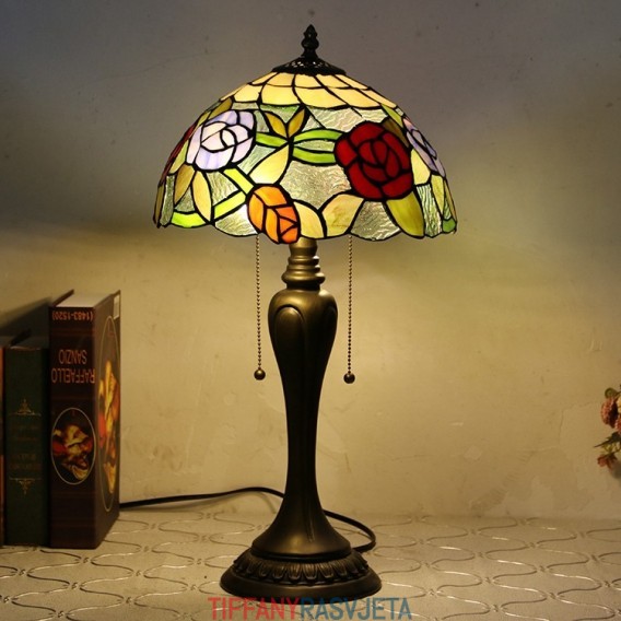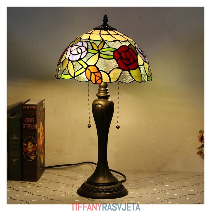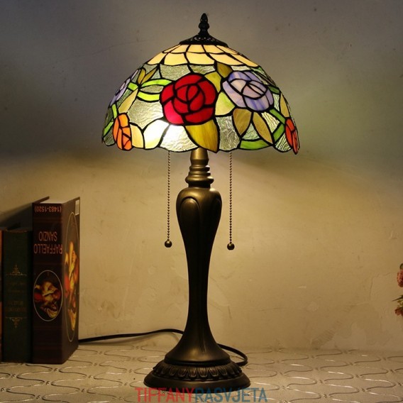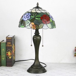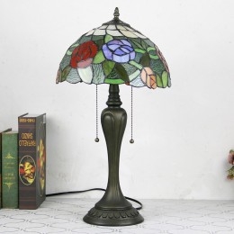 Ručno izrađena vintage stolna lampa u stilu Tiffanyja od 12 inča, stolna lampa s ružičastim vitražom, kreativna noćna lampa za spavaću sobu
