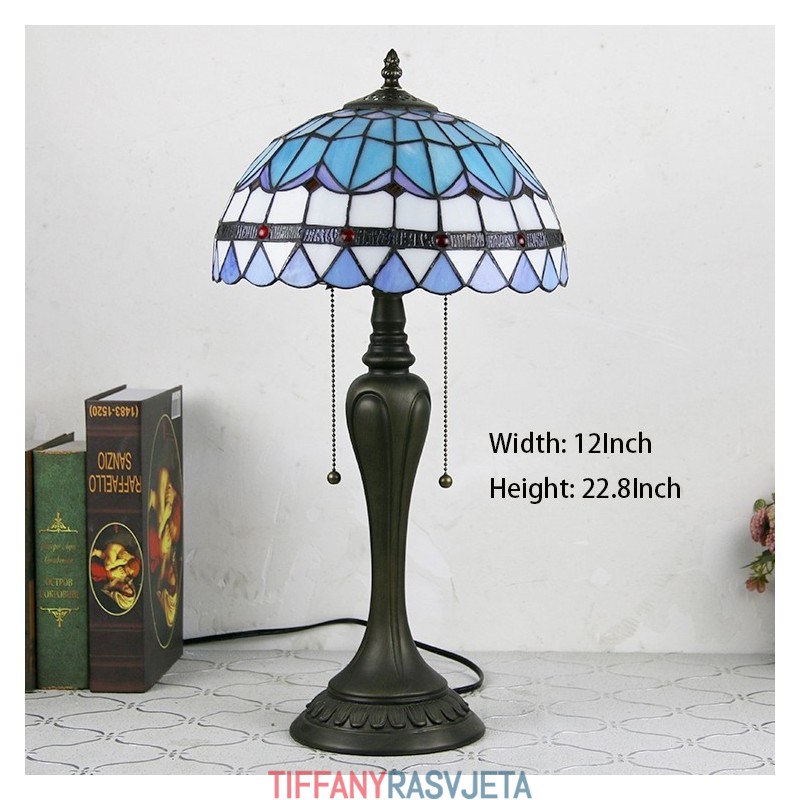 Ručno izrađena vintage stolna lampa u stilu Tiffanyja od 30 cm, ručno izrađena stolna lampa od vitraja, kreativna noćna lampa za spavaću sobu