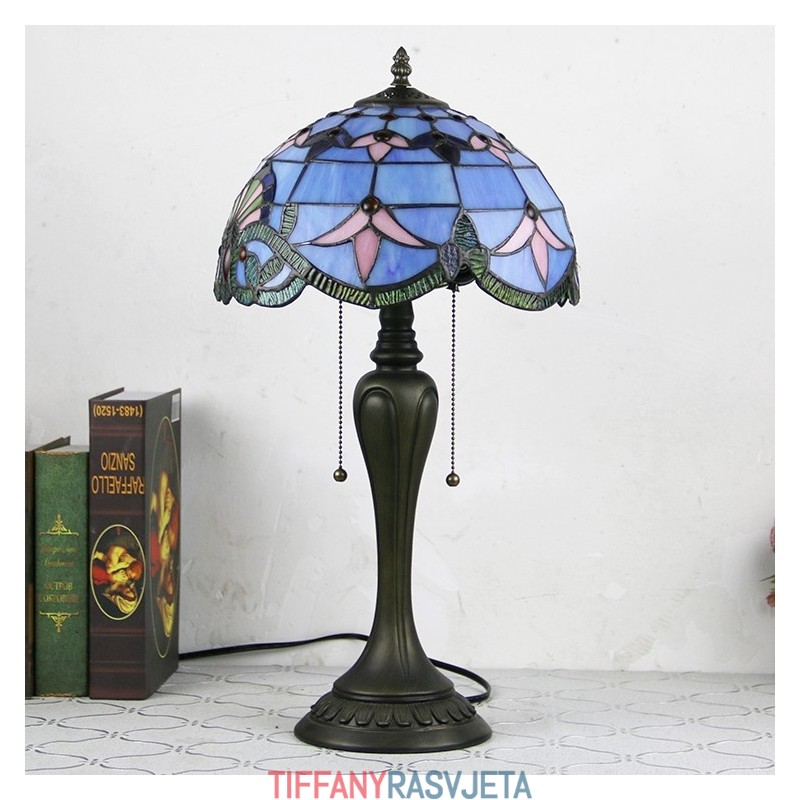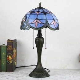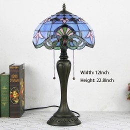 Ručno izrađena vintage stolna lampa u stilu Tiffanyja od 12 inča, plava barokna stolna lampa od vitraja, kreativna noćna lampa za spavaću sobu