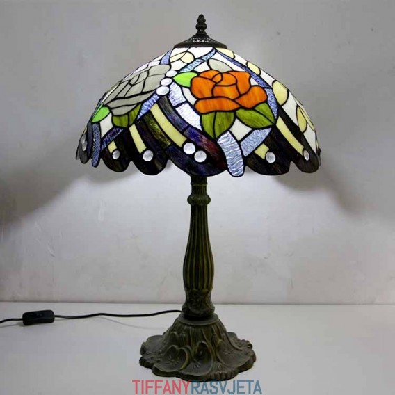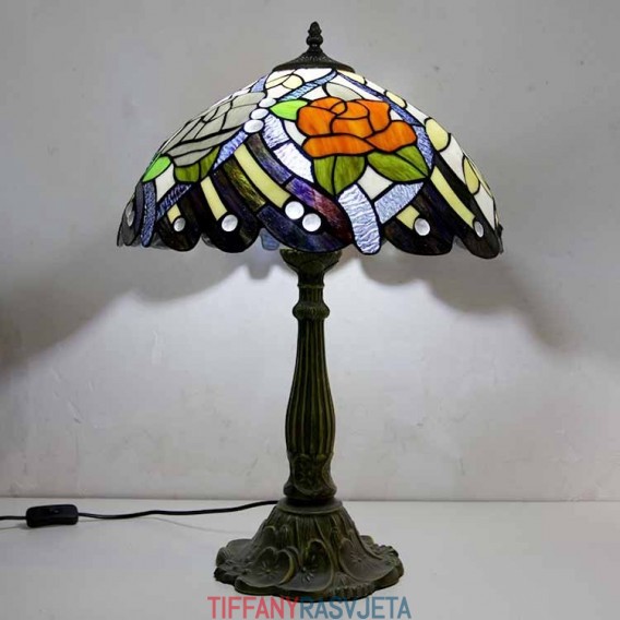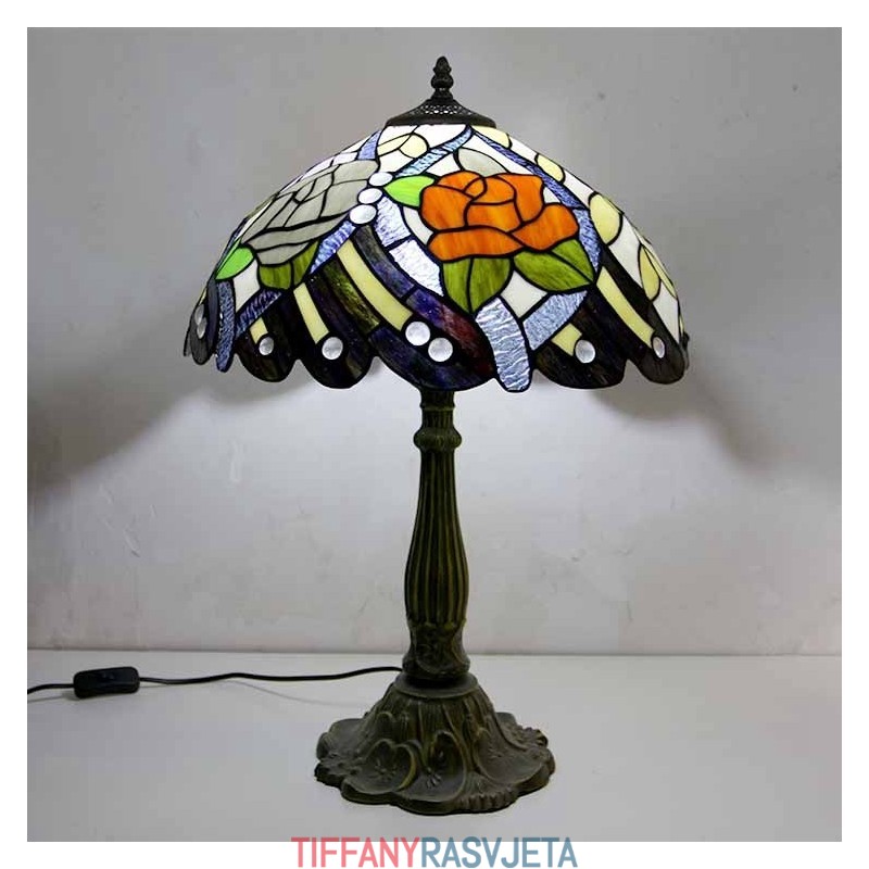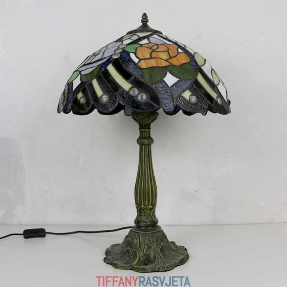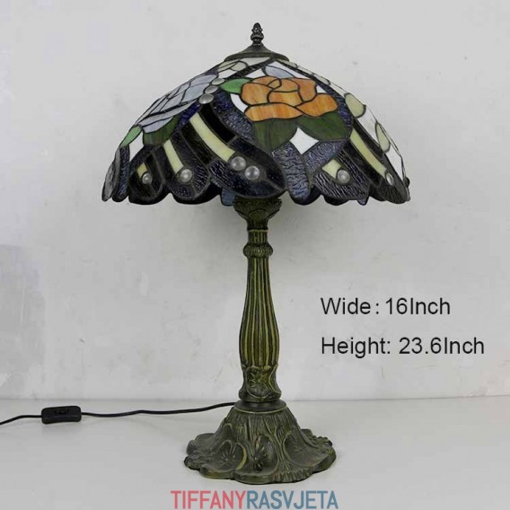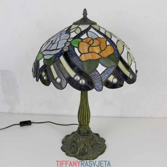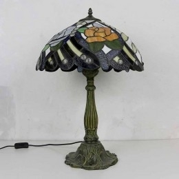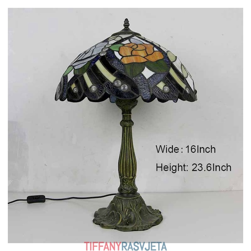 Ručno izrađena vintage rustikalna stolna lampa s vitražom u stilu Tiffany s abažurom širine 40 cm i podnožjem od legure cinka