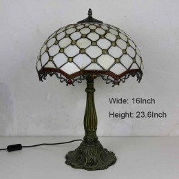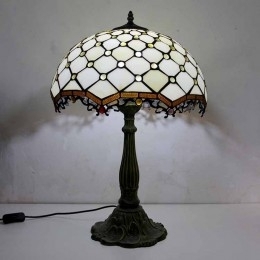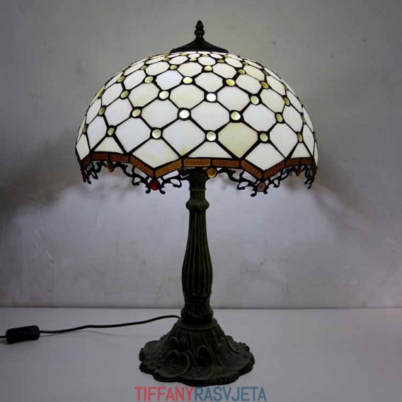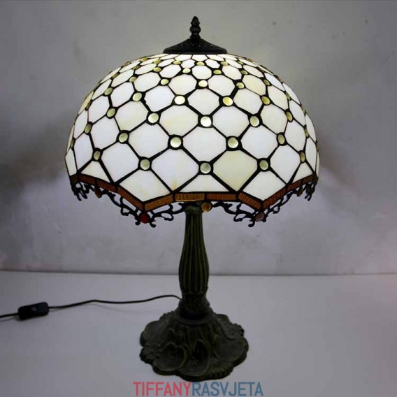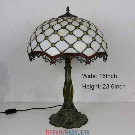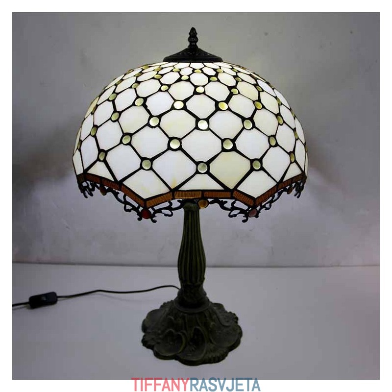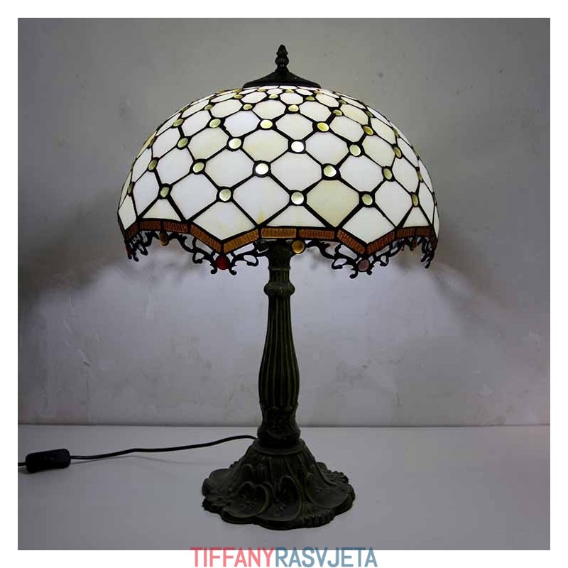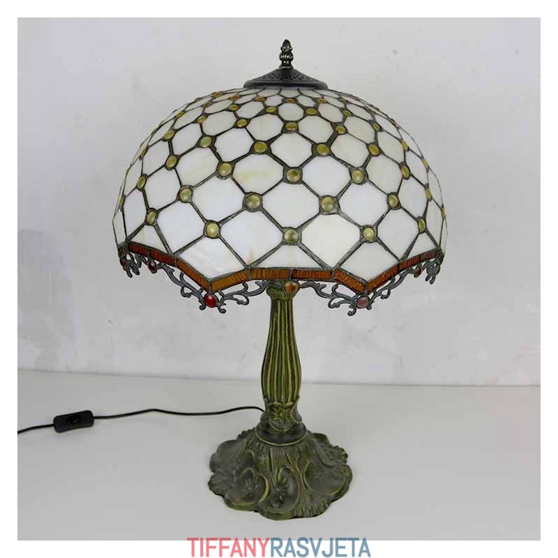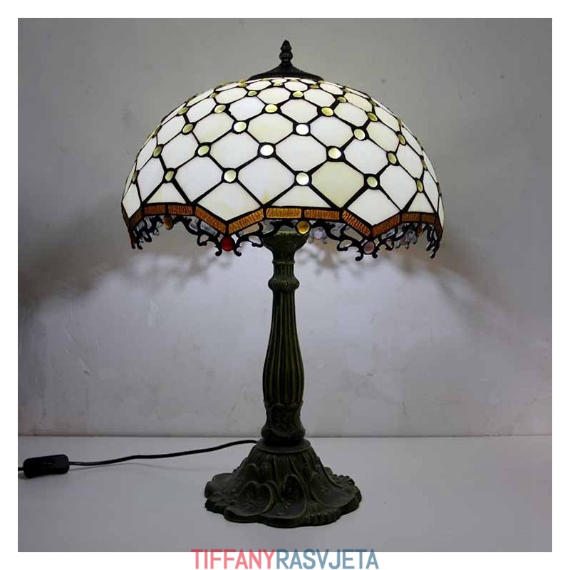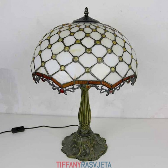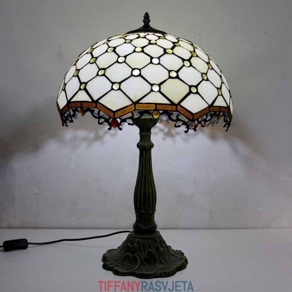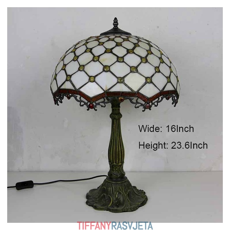 Ručno izrađena vintage stolna lampa od vitraja s draguljima, Tiffany stil, stolna lampa s abažurom širine 40 cm i podnožjem od legure cinka
