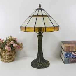 Ručno izrađena vintage Tiffany stilska žuta stolna lampa, 30 cm, vitražno sjenilo, stolna lampa, kreativni umjetnički dekor za dom