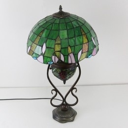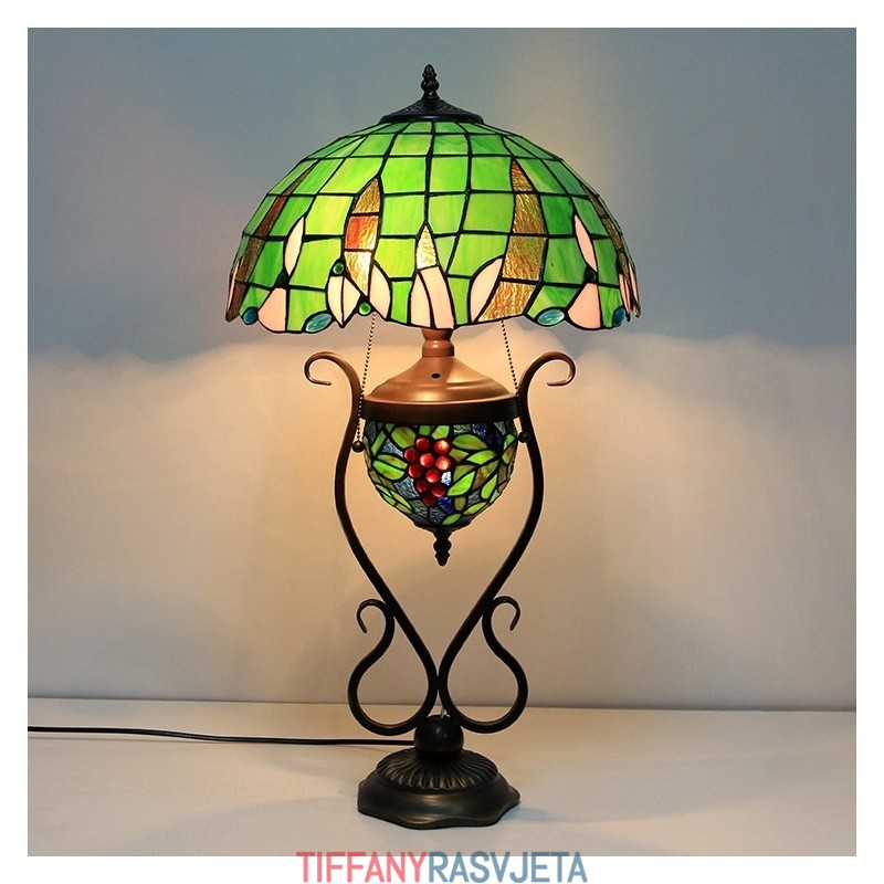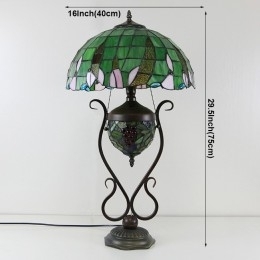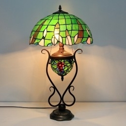Ručno izrađena vintage zelena stolna lampa u stilu vitraja u Tiffany stilu, 16 inča, s dvostrukim osvjetljenjem za spavaću sobu, umjetnička rasvjeta za noćni krevet