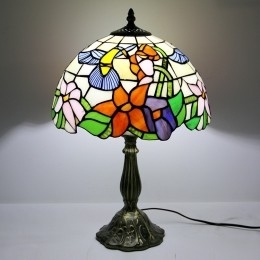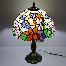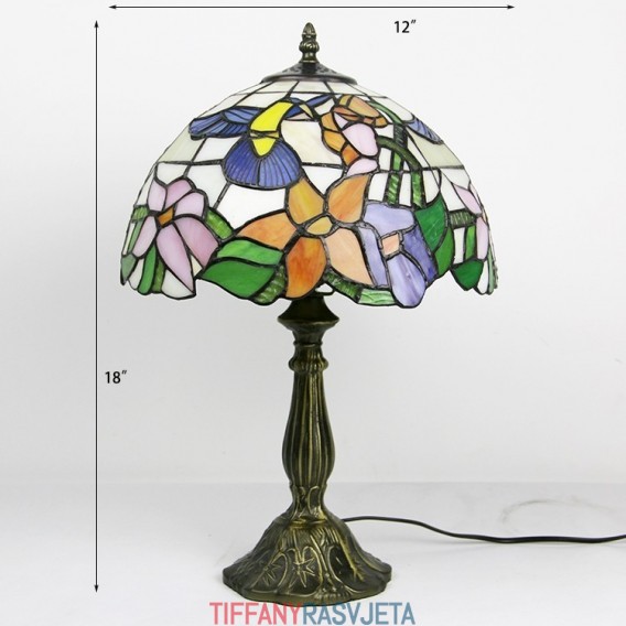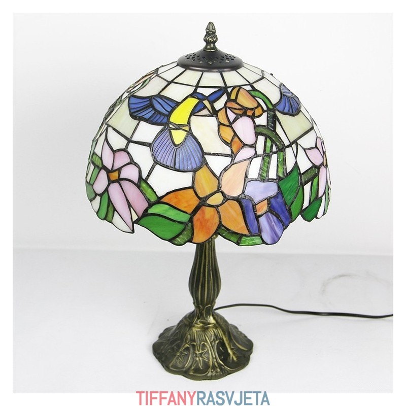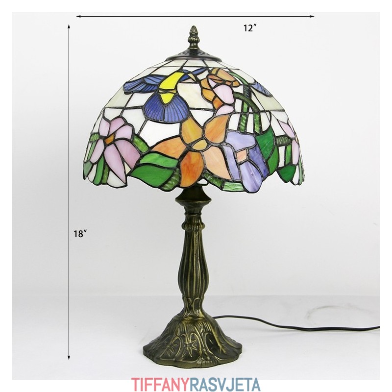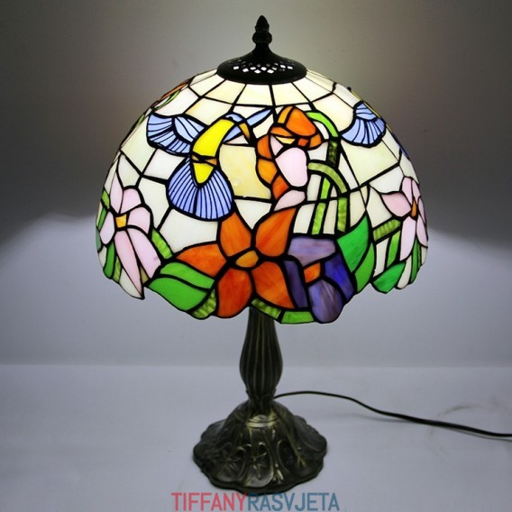 Ručno izrađena vintage Tiffany lampa od 30 cm, vitražna noćna lampa s motivima ptica i cvijeća, stolna lampa za čitanje, visoka 45 cm