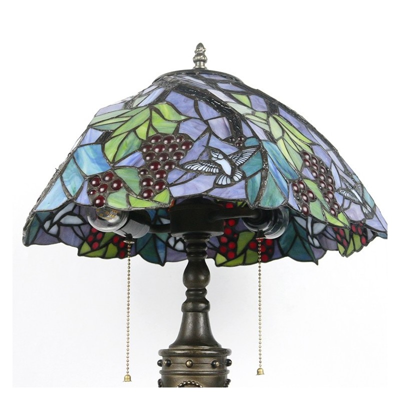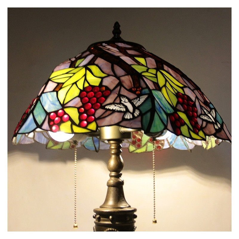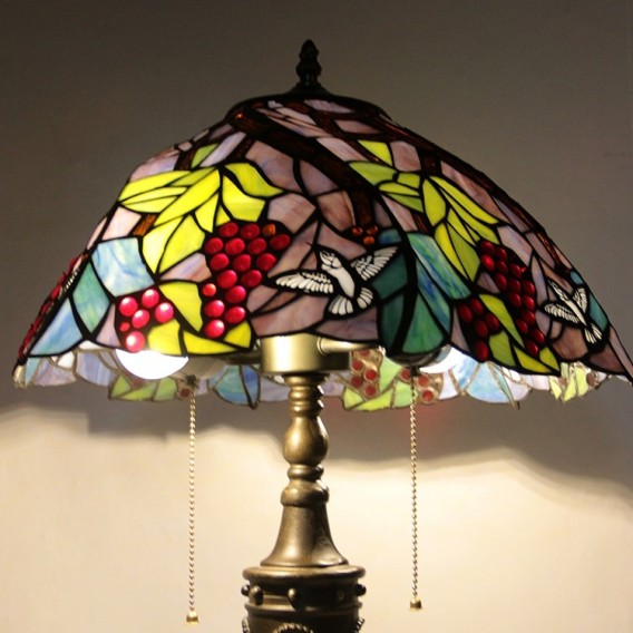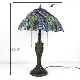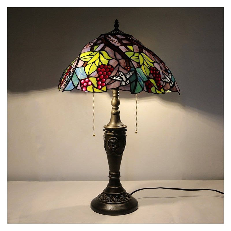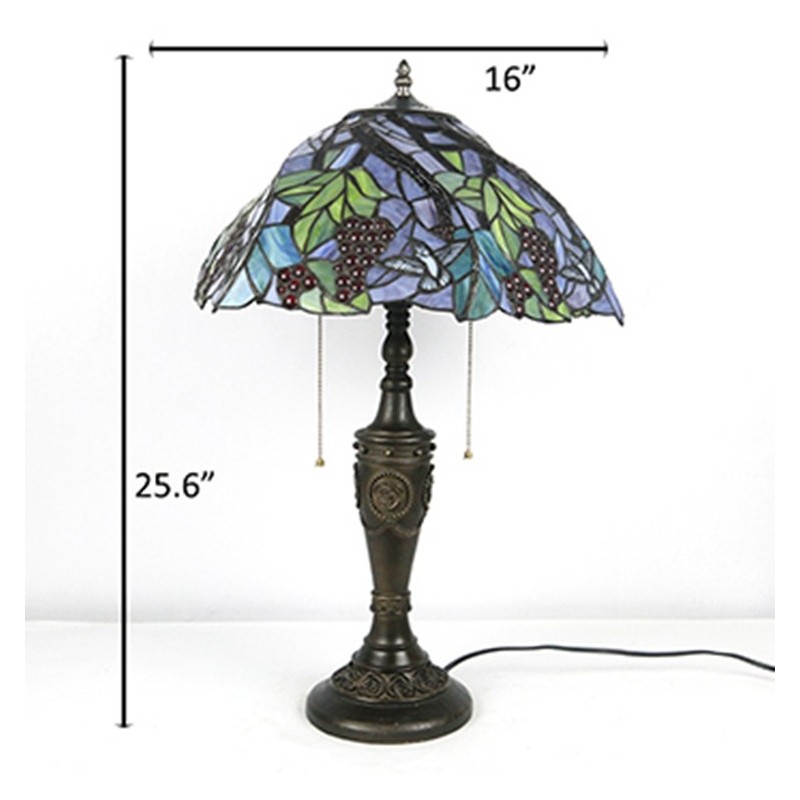 Ručno izrađena vintage 16-inčna retro Tiffany stolna lampa od vitraja, konusna lampa s motivom grožđa, ručno izrađena staklena stolna lampa