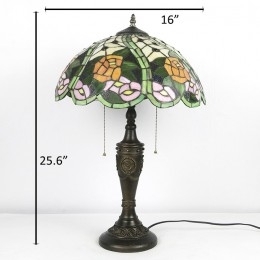 Ručno izrađena vintage 16-inčna retro Tiffany stolna lampa Crveni vitraj Žuta ružasta svjetla za lampu Ručno izrađena staklena stolna lampa