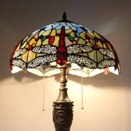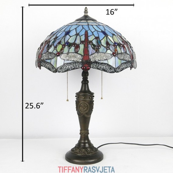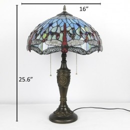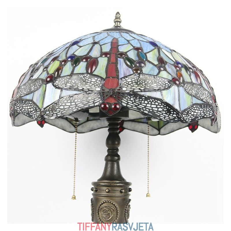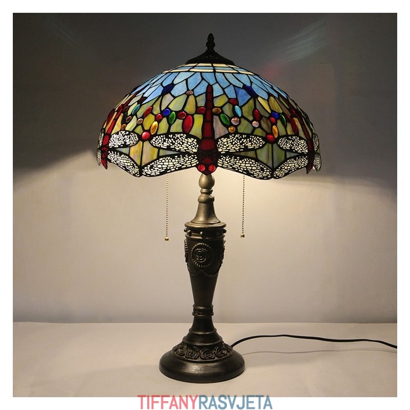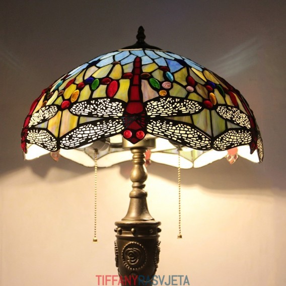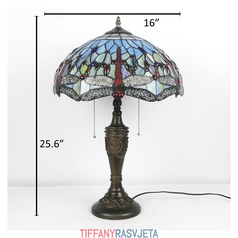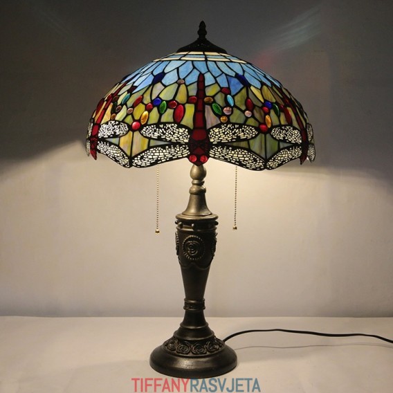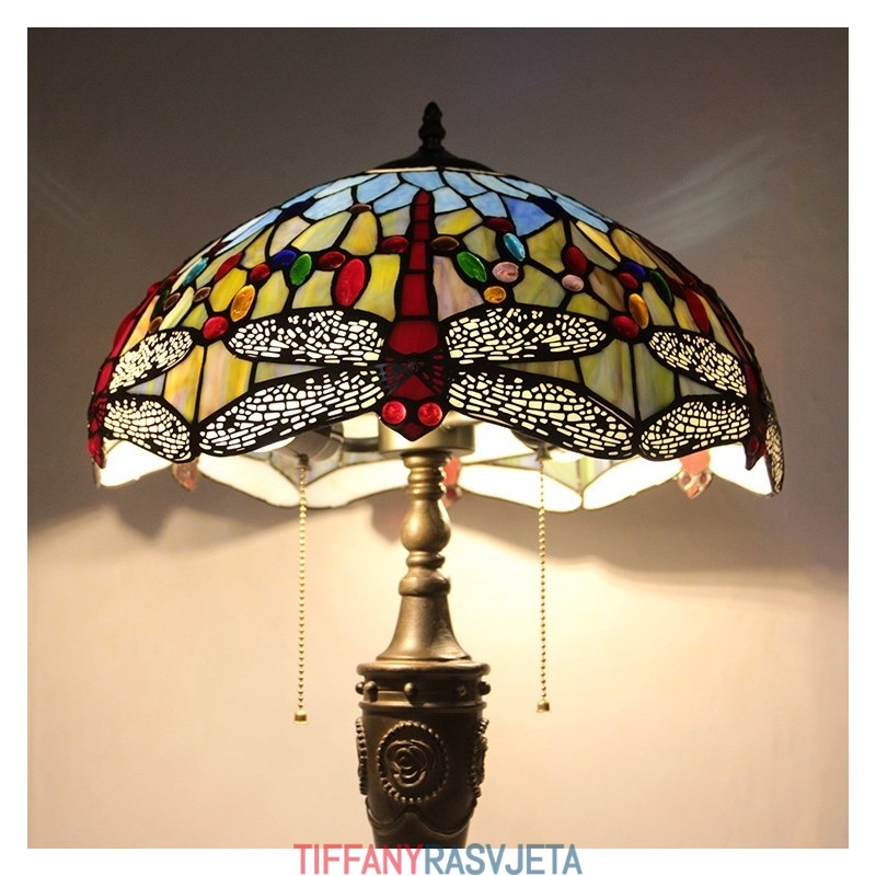 Ručno izrađena vintage 16-inčna retro Tiffany stolna lampa od crvenog vitraja, crveni abažur s motivom vretenaca, ručno izrađena staklena stolna lampa