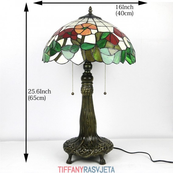 Ručno izrađena vintage 16-inčna Tiffany lampa od vitraja, stolna lampa Frolar, stil abažura, stolna lampa za čitanje, dekorativna rasvjeta