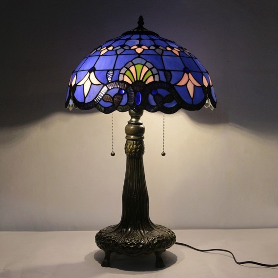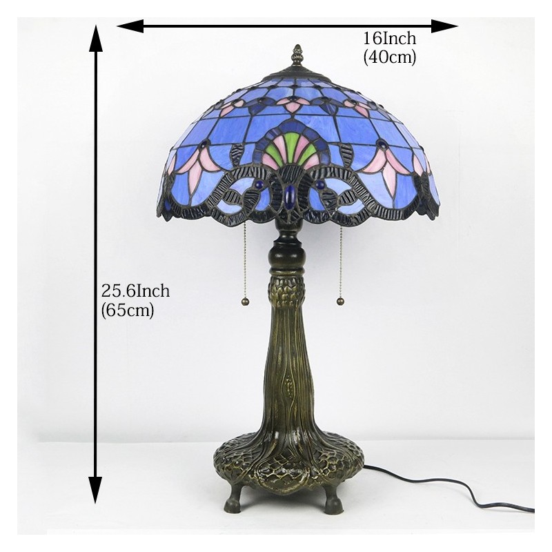 Ručno izrađena vintage Tiffany lampa od 16 inča, stolna lampa od vitraja, ljubičasta barokna lampa u stilu abažura, stolna lampa za čitanje