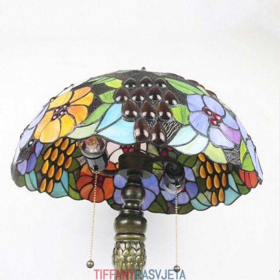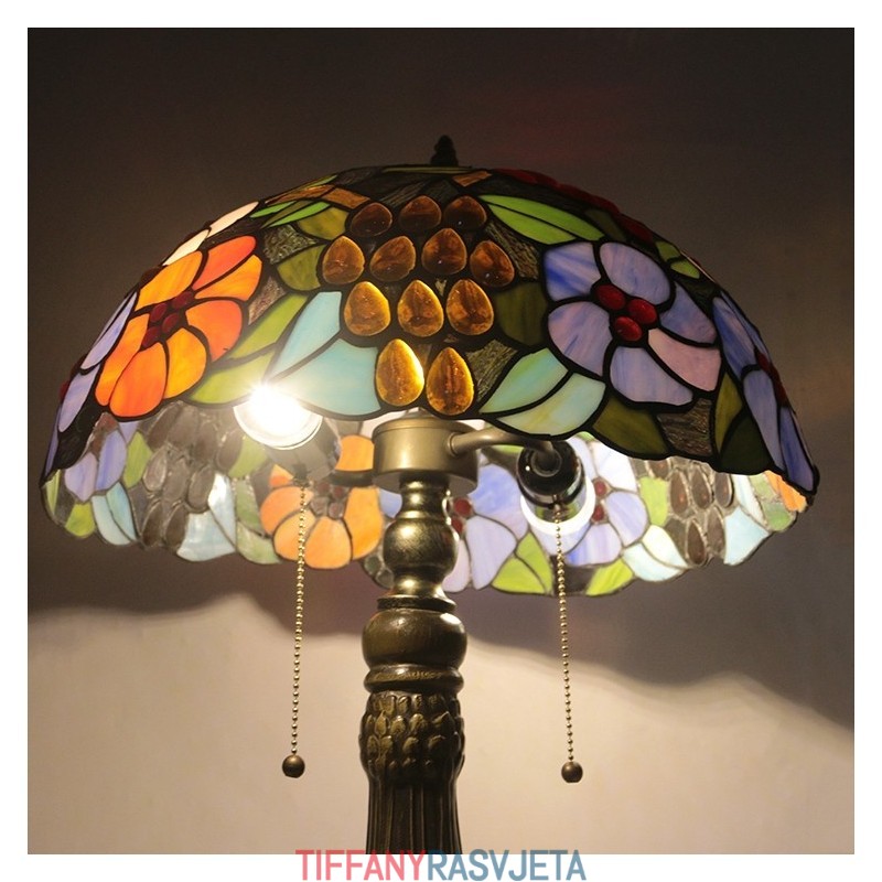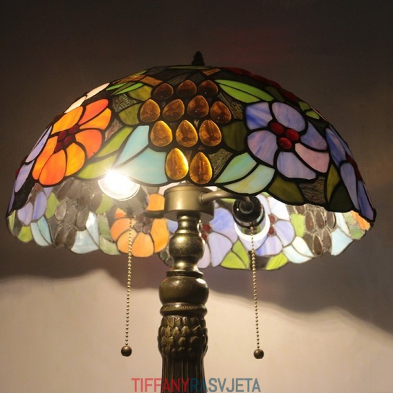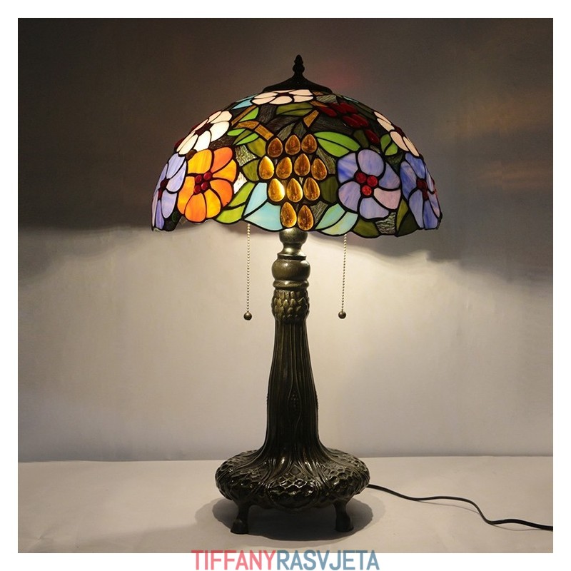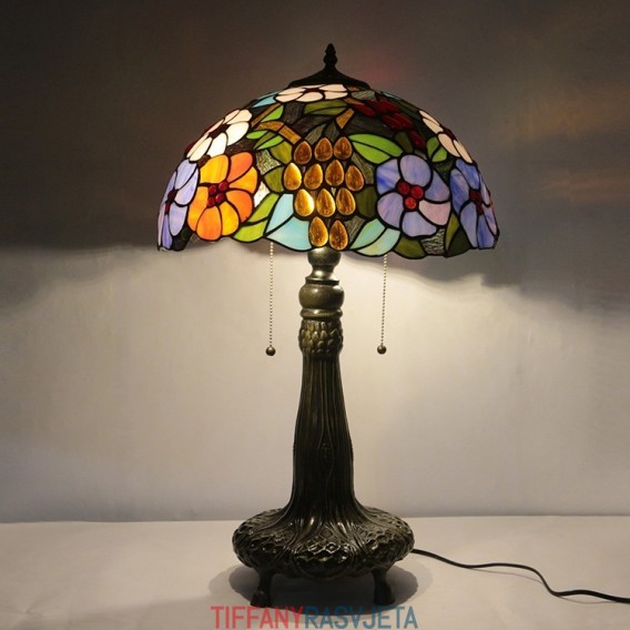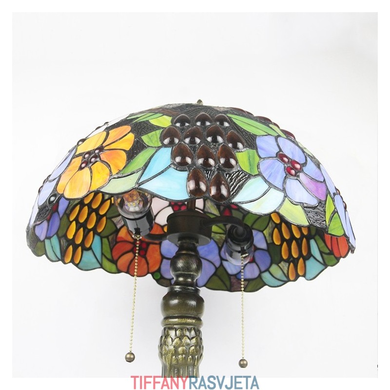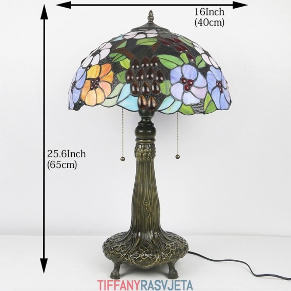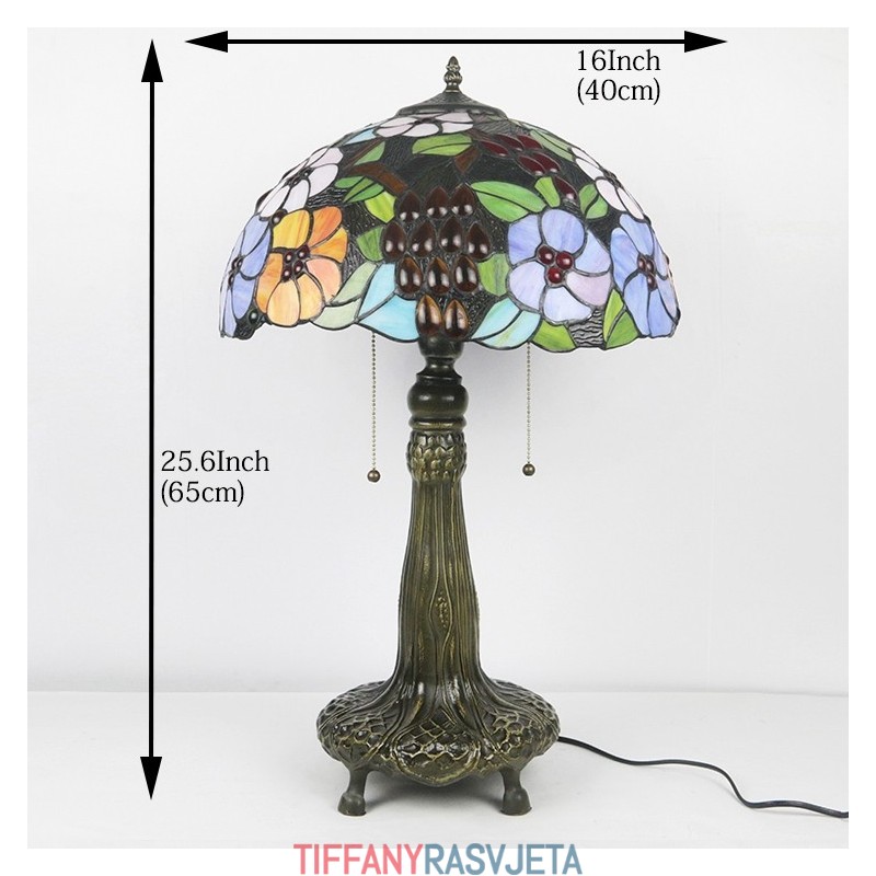 Ručno izrađena vintage Tiffany lampa od 16 inča, stolna lampa od vitraja u stilu grožđa i cvijeća, stolna lampa za čitanje, dekorativna rasvjeta