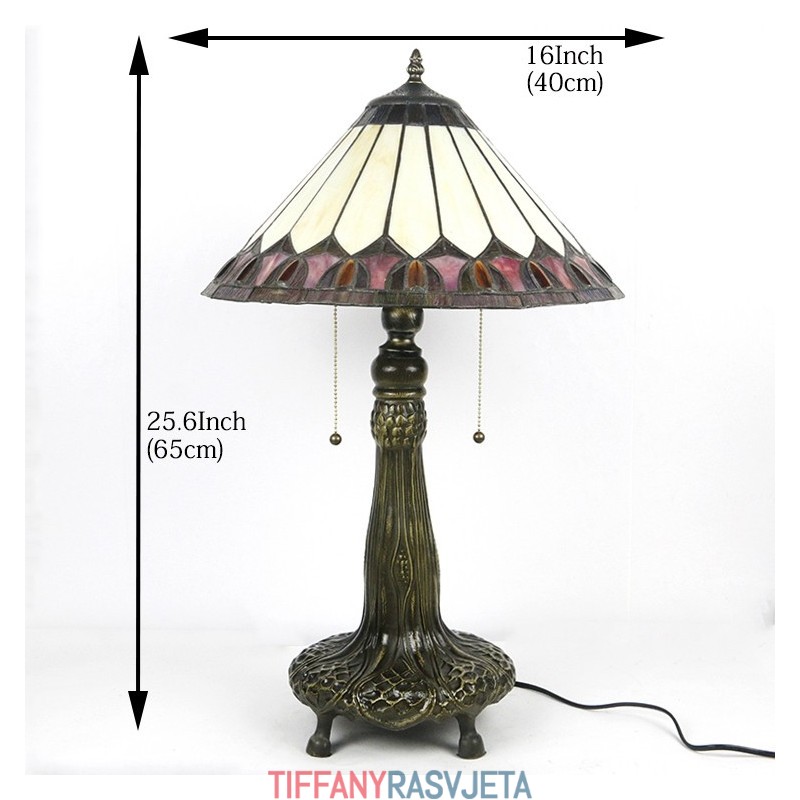 Ručno izrađena vintage 16-inčna Tiffany lampa s konusnim vitražnim abažurom, stolna lampa, klasična stolna lampa za čitanje, dekorativna rasvjeta