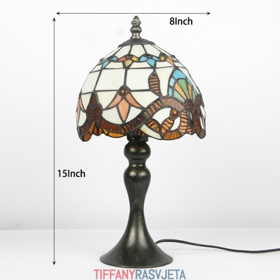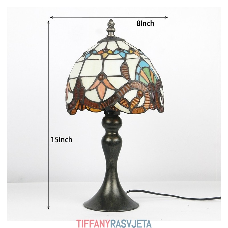 Ručno izrađena vintage Tiffany stolna svjetiljka u stilu vitraja, barokna abažurna stolna noćna svjetiljka za čitanje, Š8V15 inča