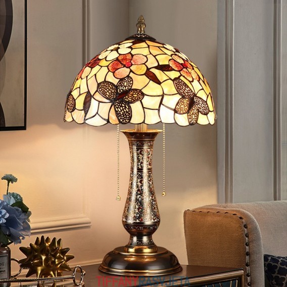 Ručno izrađena vintage luksuzna staklena svjetiljka s motivom leptira i cvijeta od 12 inča, s podlogom od čistog mesinga u Tiffany stilu, na prodaju