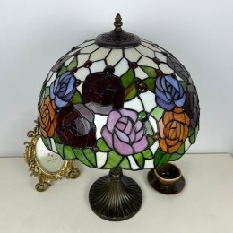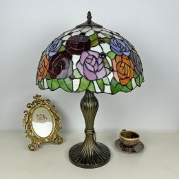 Ručno izrađena vintage velika stolna lampa s ružičastim sjenilom od 40 cm, Tiffany stil, od vitraja