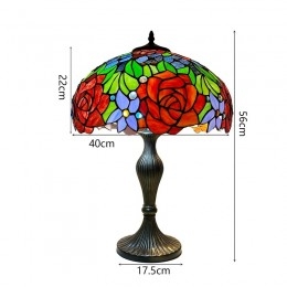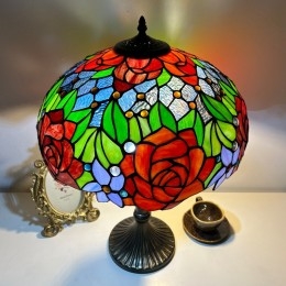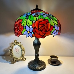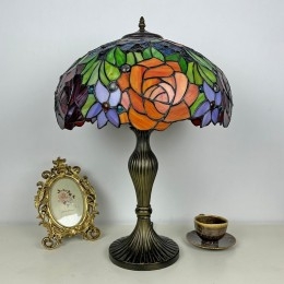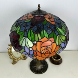 Ručno izrađena vintage velika stolna lampa s ružičastim sjenilom od 40 cm, Tiffany stil, od vitraja