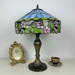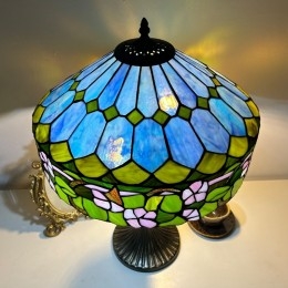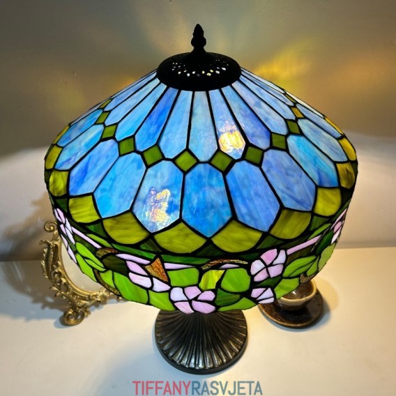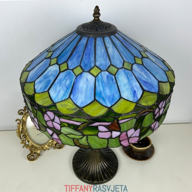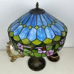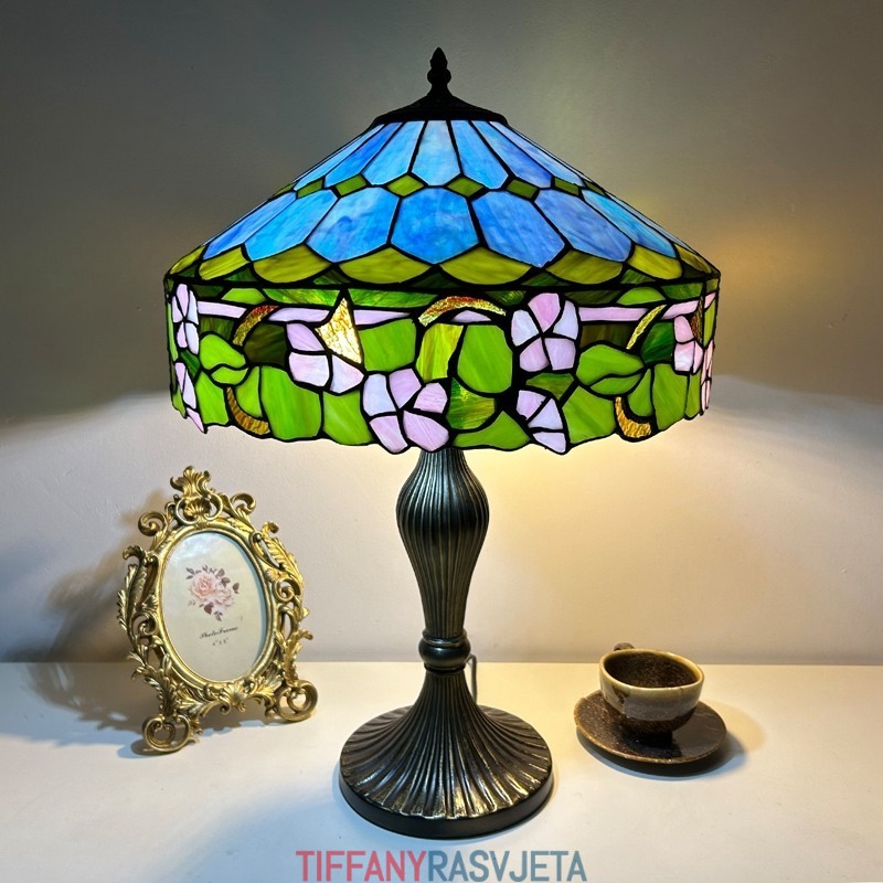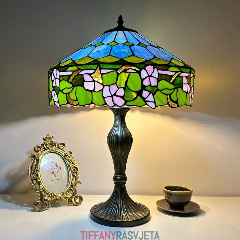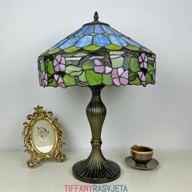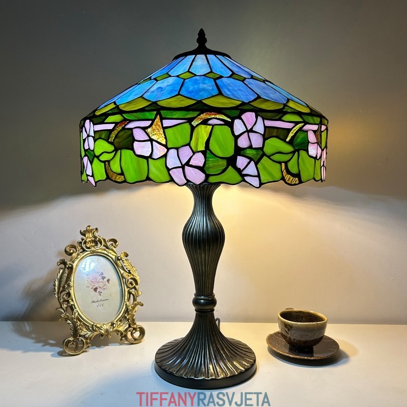 Ručno izrađena vintage velika stolna lampa s cvjetnim abažurom od 40 cm, u stilu Tiffanyja, od vitraja