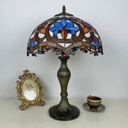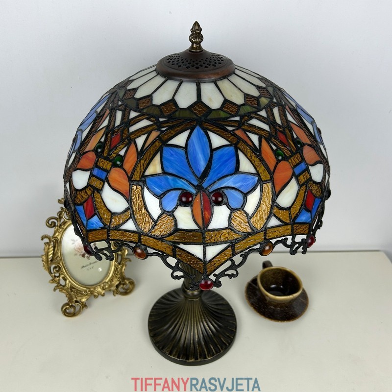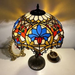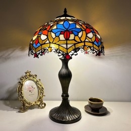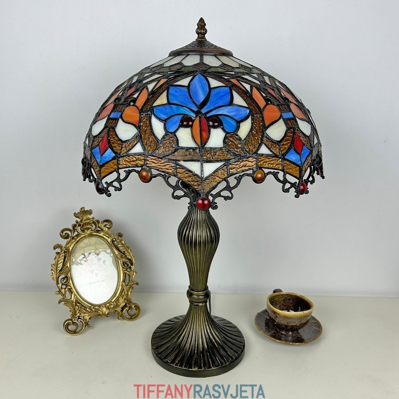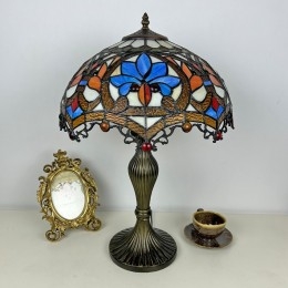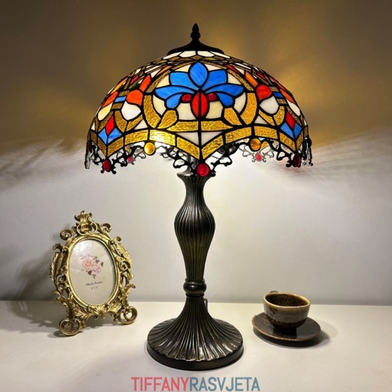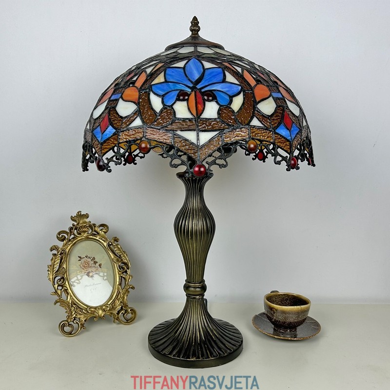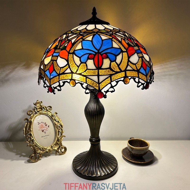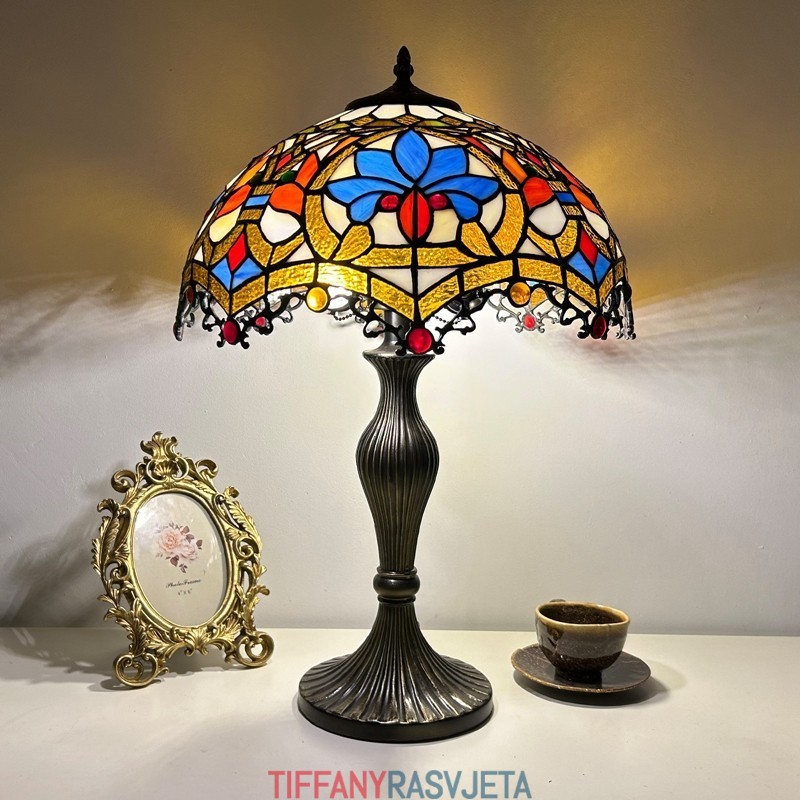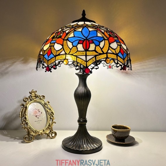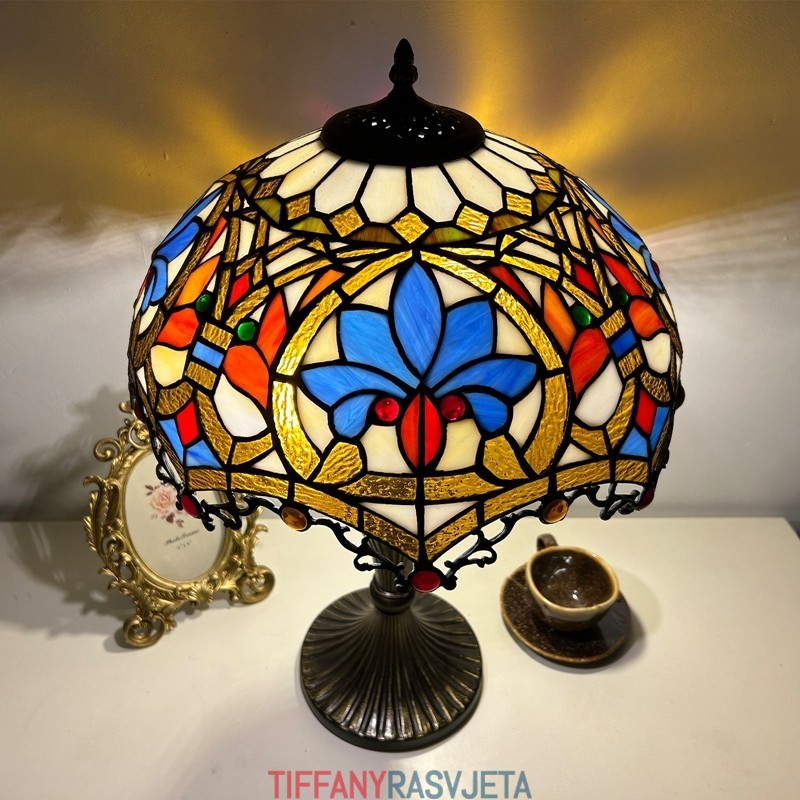 Ručno izrađena vintage velika barokna abažurna lampa od vitraja u Tiffany stilu, 40 cm