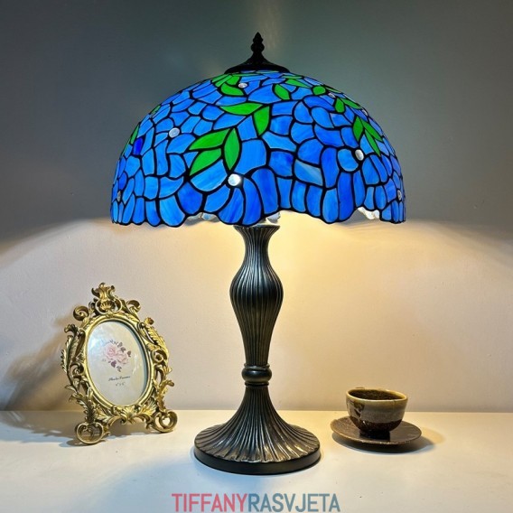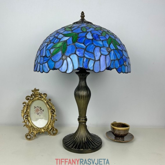 Ručno izrađena vintage velika stolna lampa s abažurom od glicinije od 40 cm, u stilu Tiffanyja, od vitraja