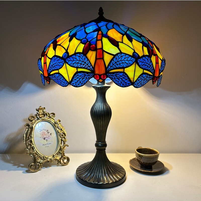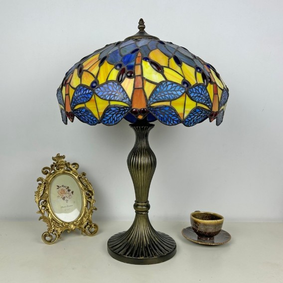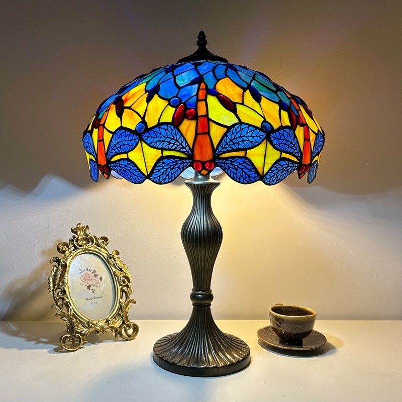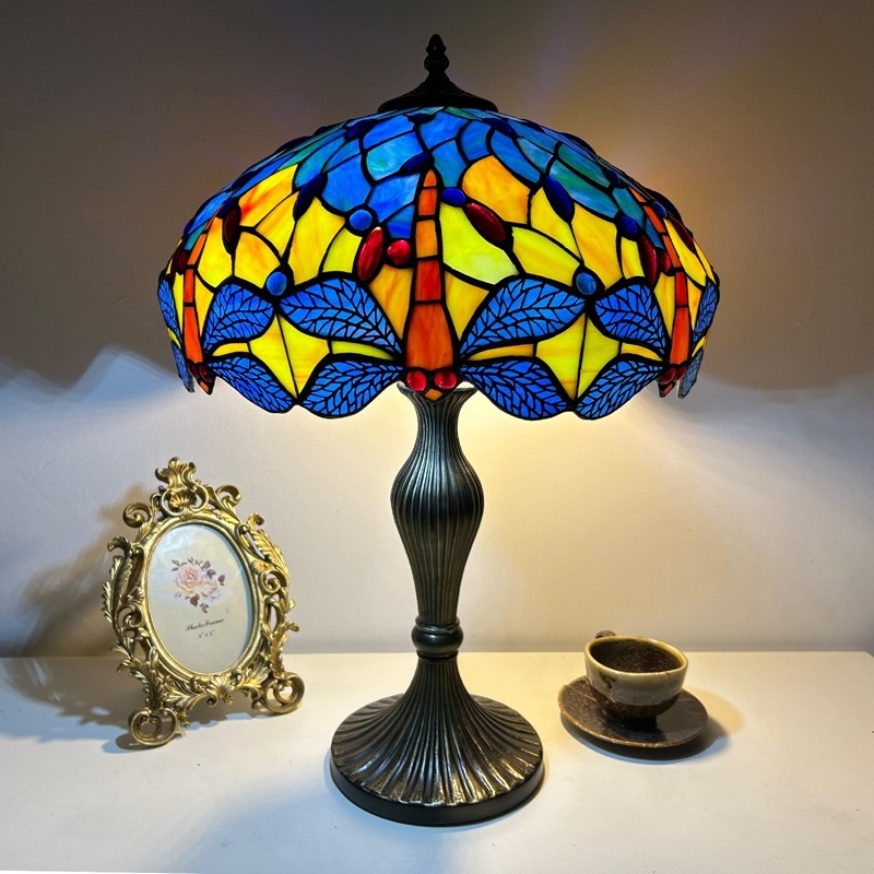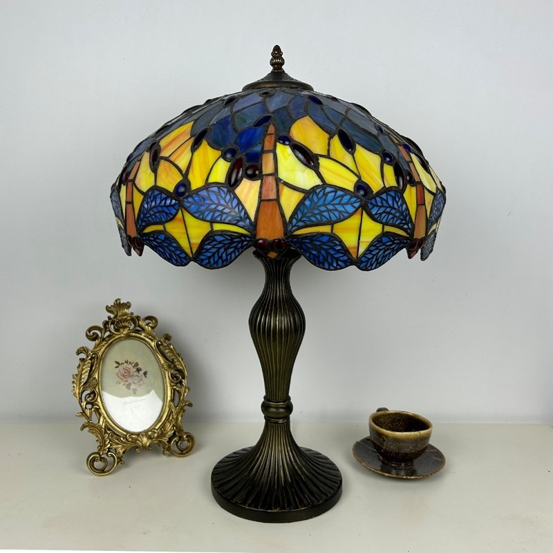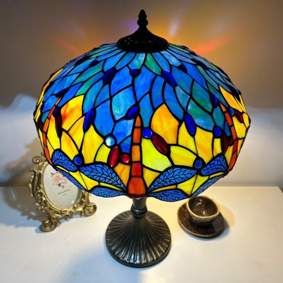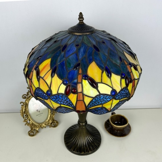 Ručno izrađena vintage velika stolna lampa s vitrajem u obliku sjenila od 40 cm, Tiffany stil