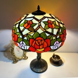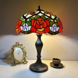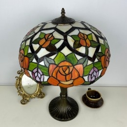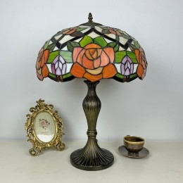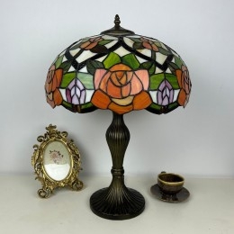 Ručno izrađena vintage velika stolna lampa s ružičastim sjenilom od 40 cm, Tiffany stil, od vitraja