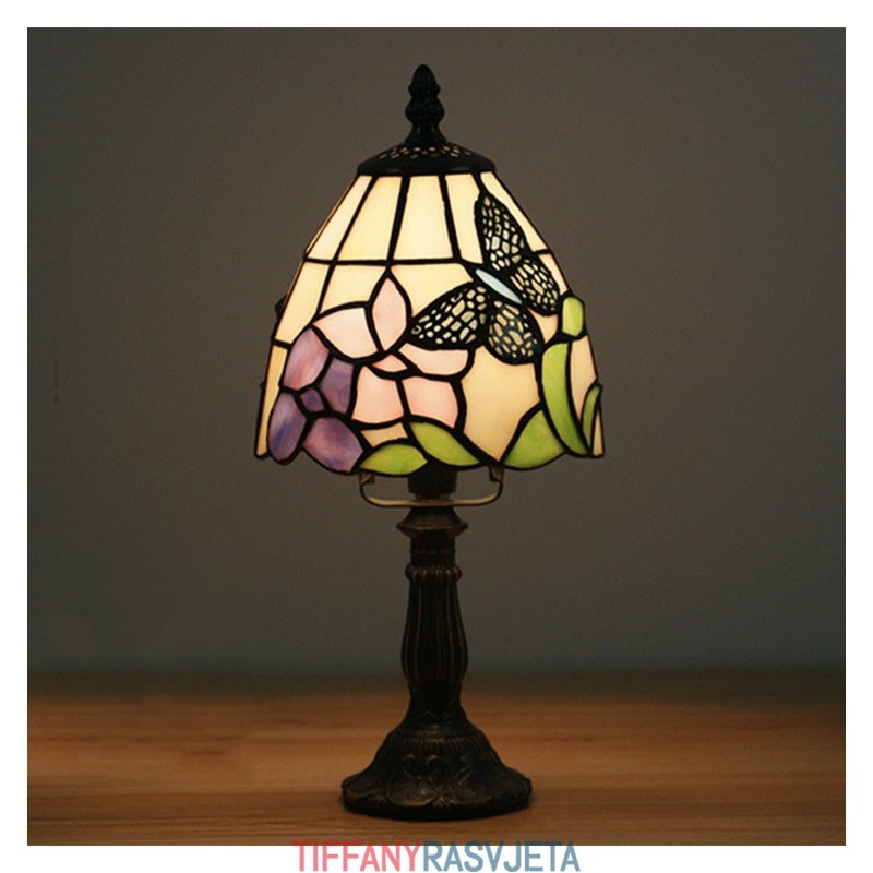 Ručno izrađena vintage stolna lampa Tiffany s leptirom, 15 cm